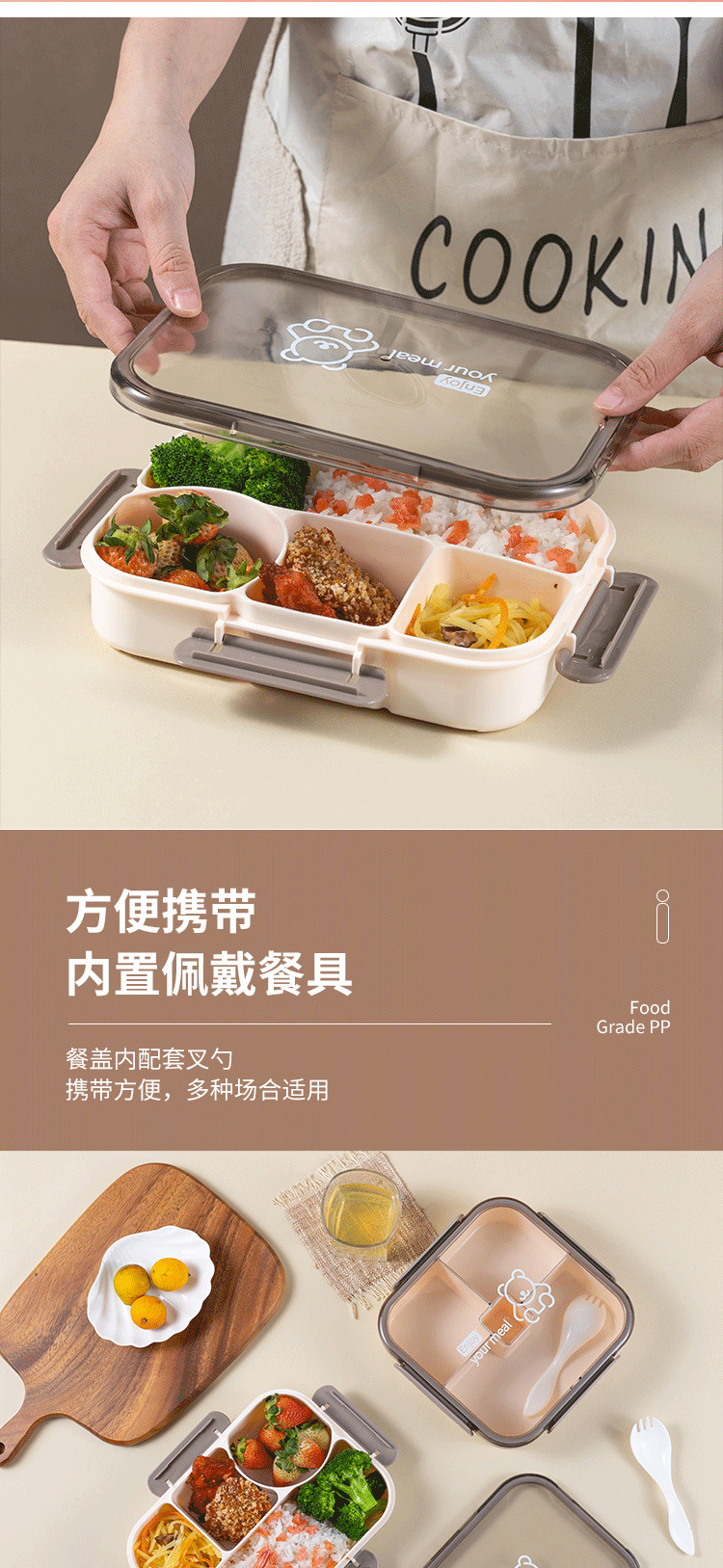 Product code: DM6021 / Product name: Yuewei rectangular four-compartment lunch box / Capacity: 1050ML