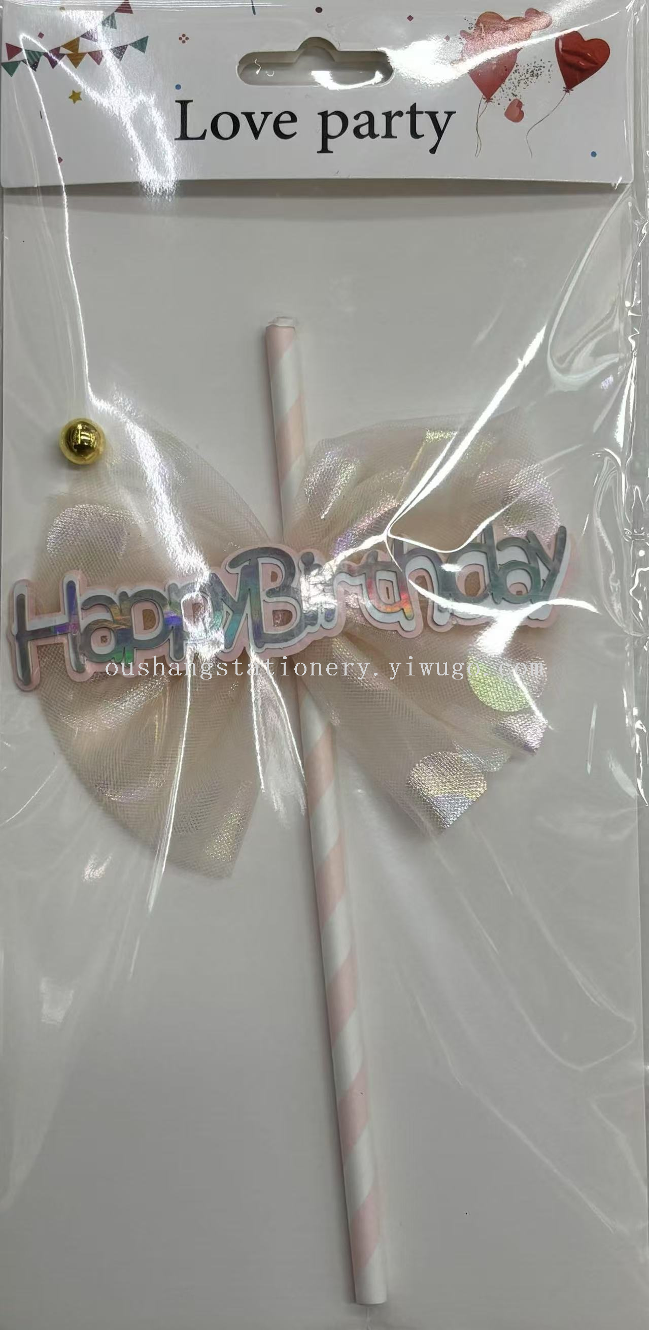 New Strawberry Bow Cake Flag for Cake Decorating