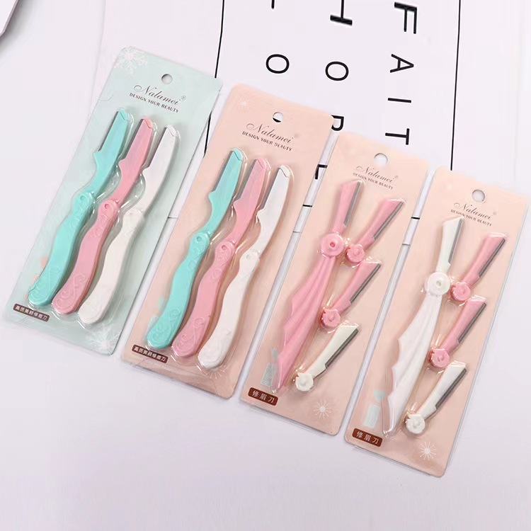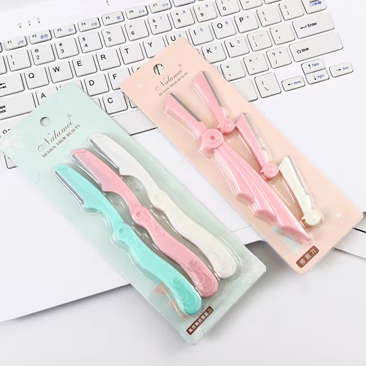 new 3 pack beauty foldable eye-brow knife eyebrow scraper plastic beauty eyebrow knife beauty tools suit lot 中文版