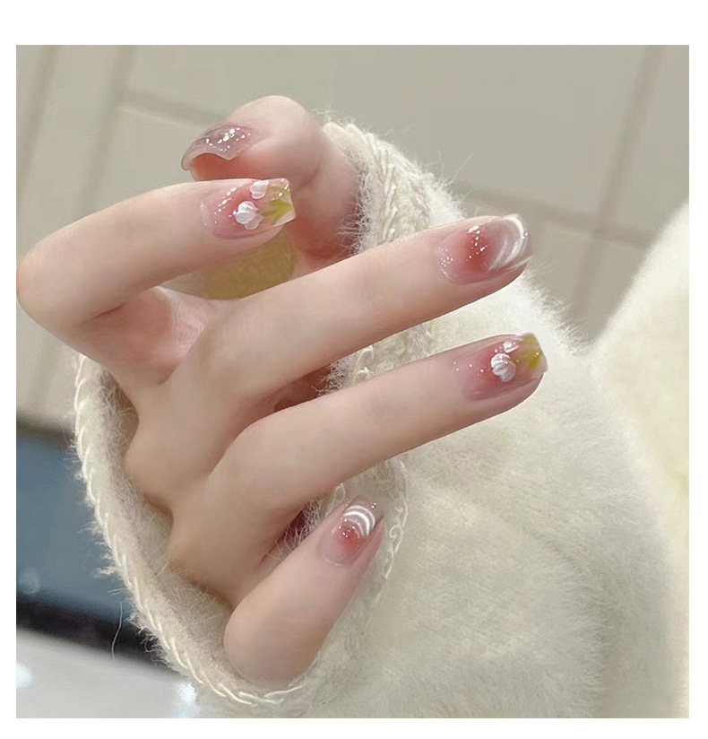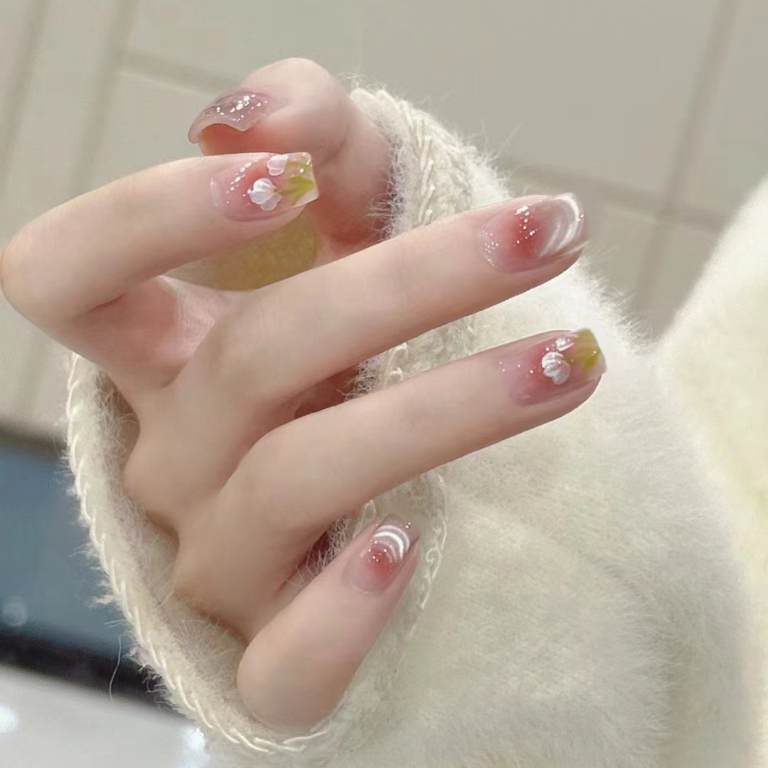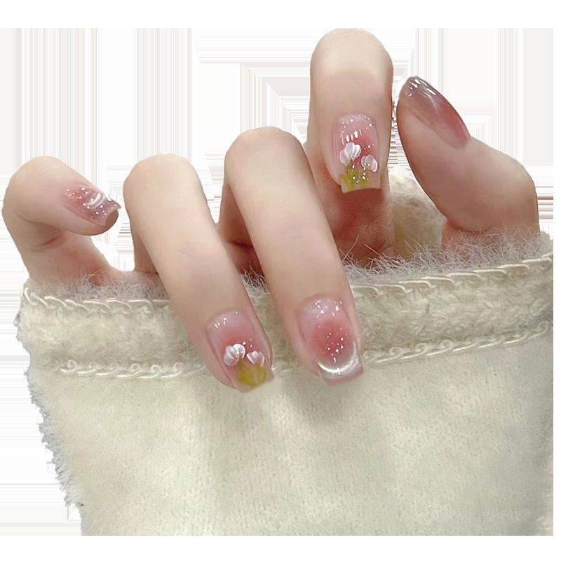 handmade wear nail eye tulip high-grade sense small white simple short nail stickers 中文版