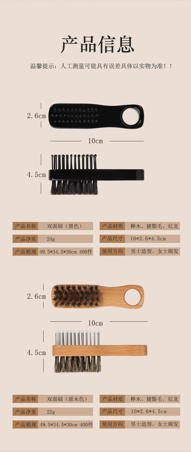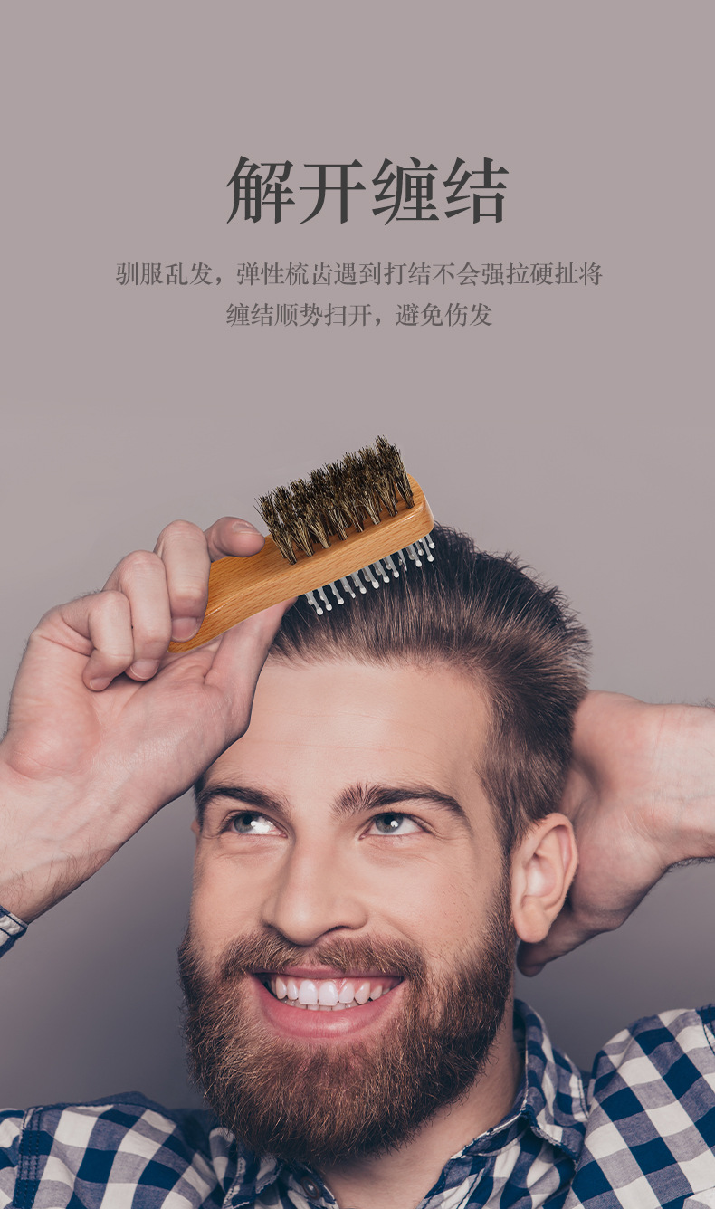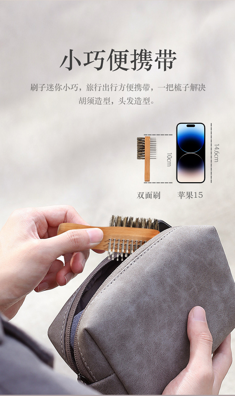 cross-border bristle two-sided brush men's shaving brush styling comb comb for greasy hair haircut shredded hair brush mini-portable comb 中文版