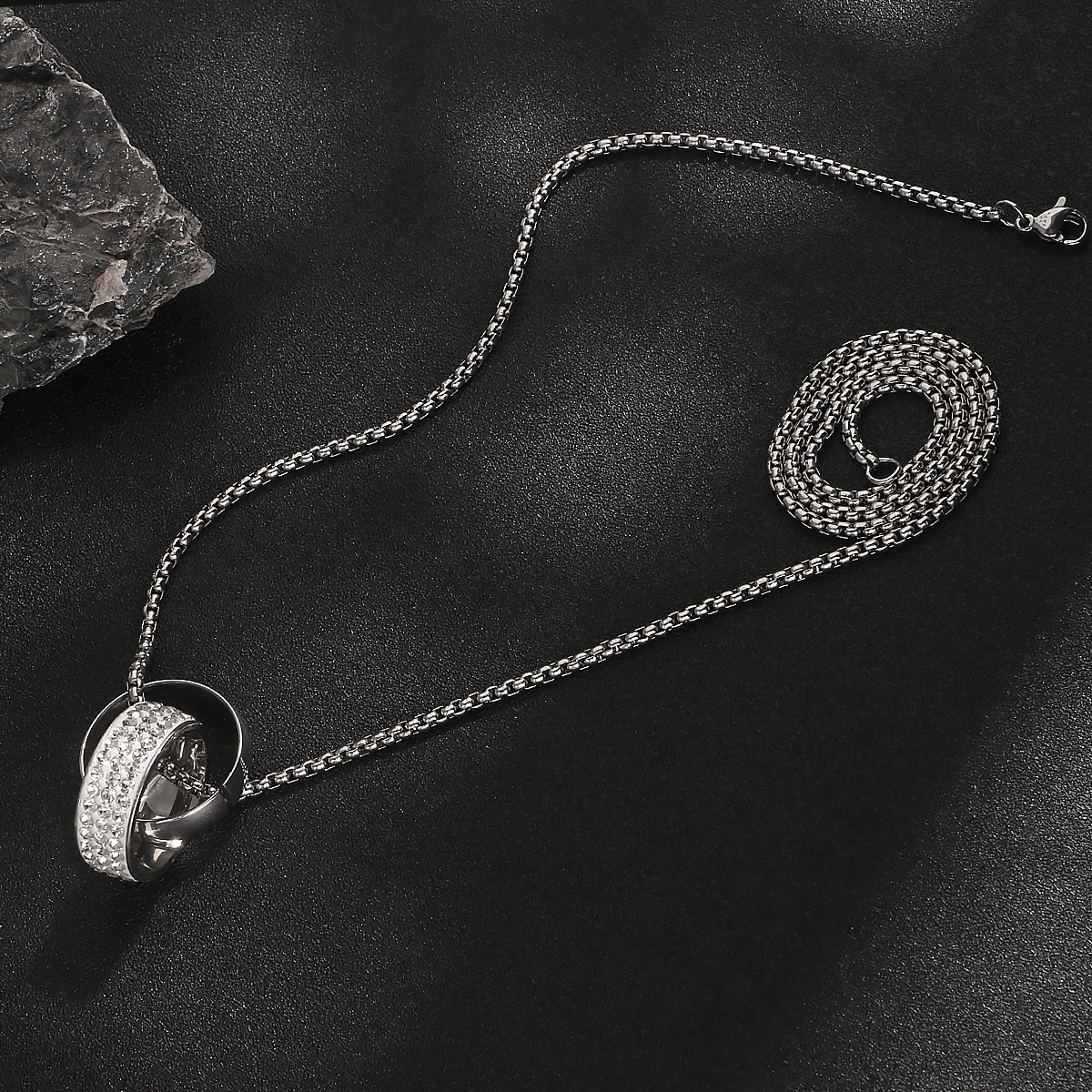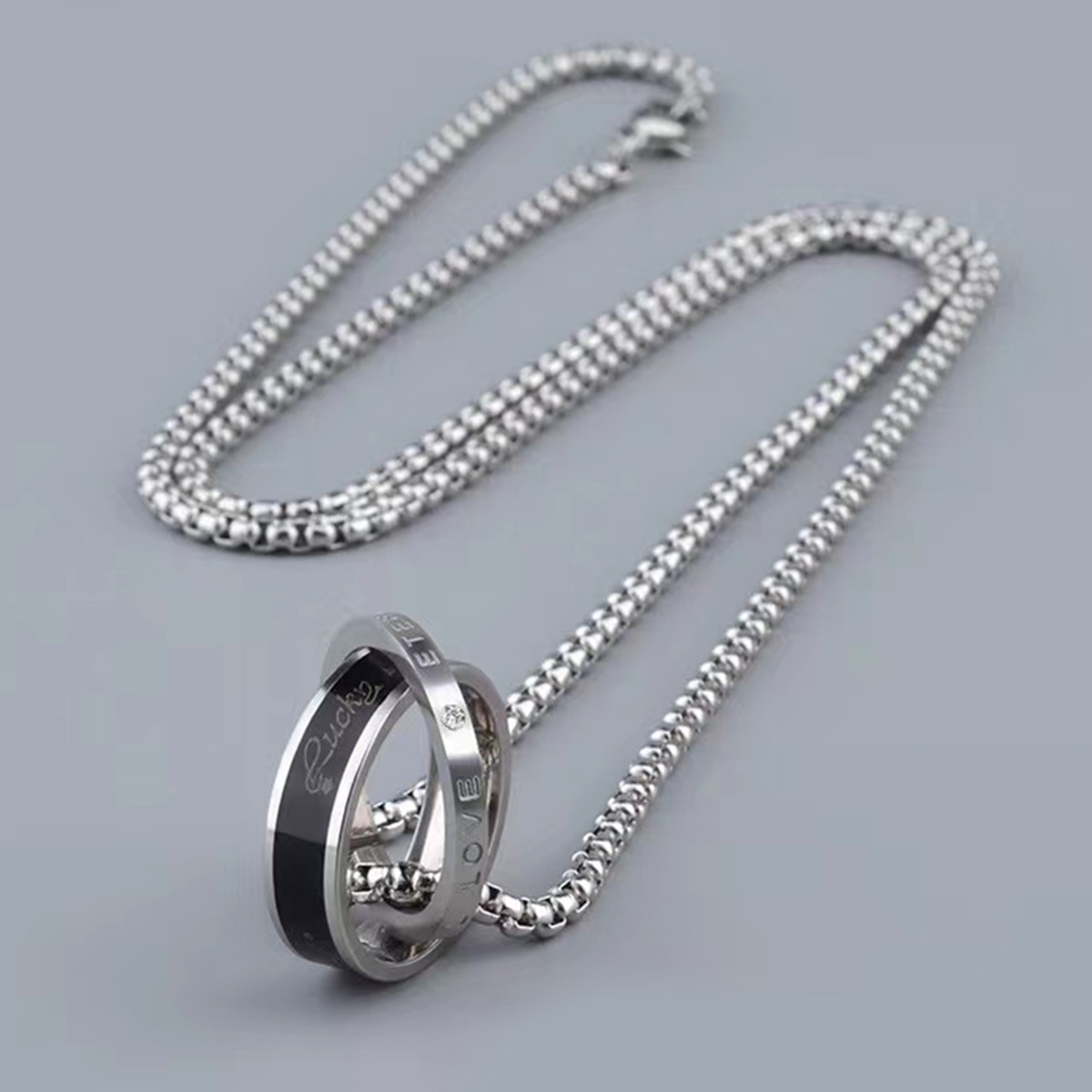 eternal ring buckle/titanium steel necklace 60cm