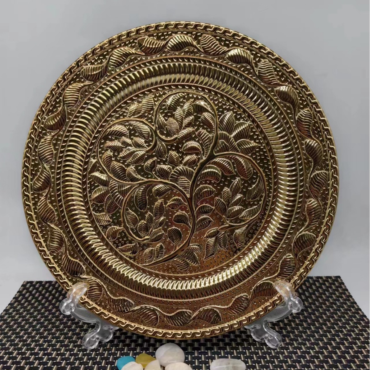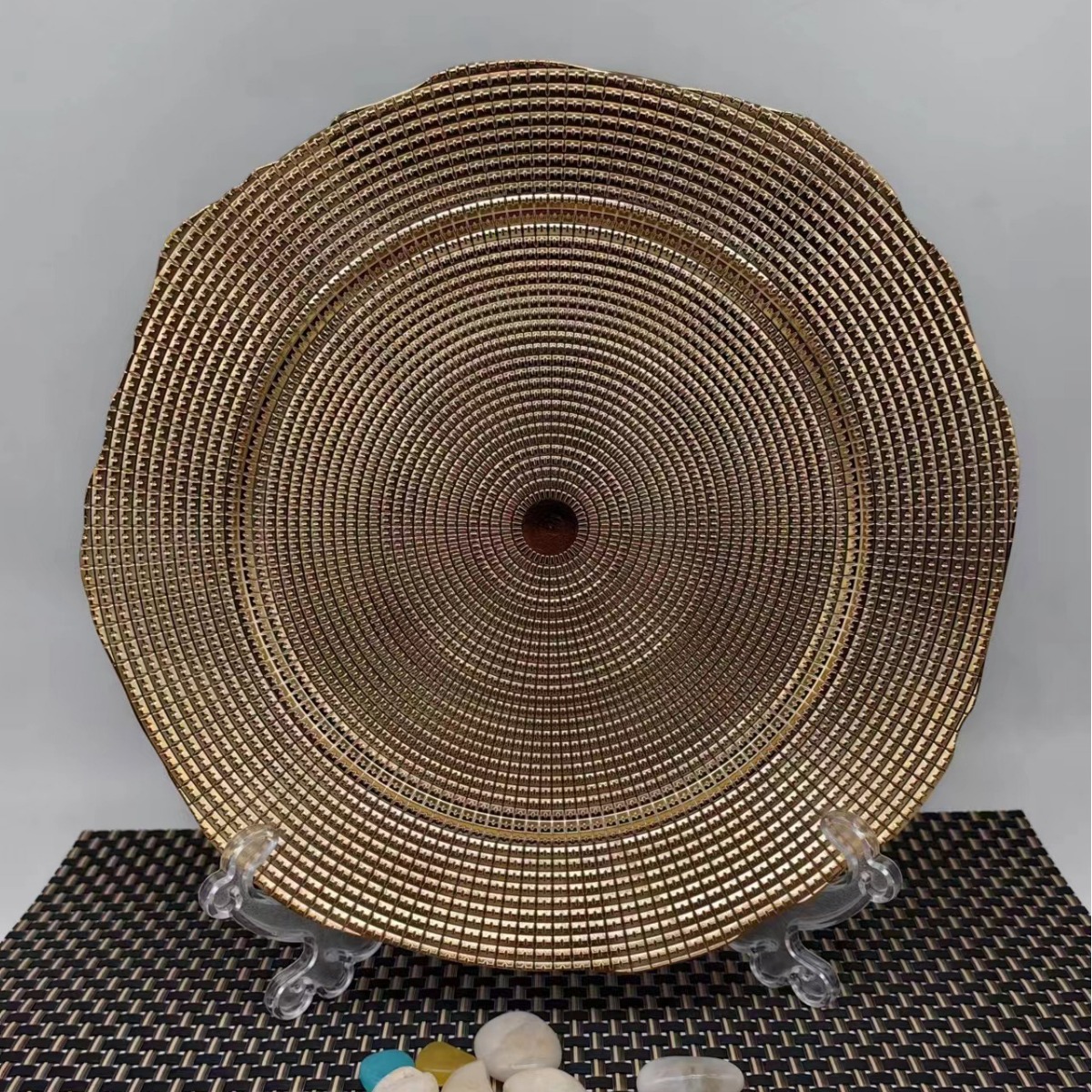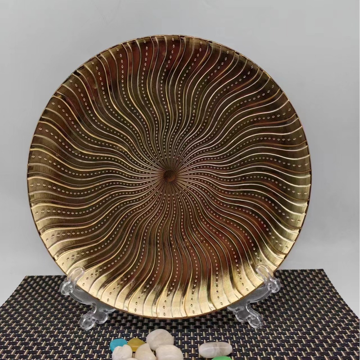 factory wholesale electroplating western cuisine plate hotel decoration plastic tray round fruit plate household charger plate