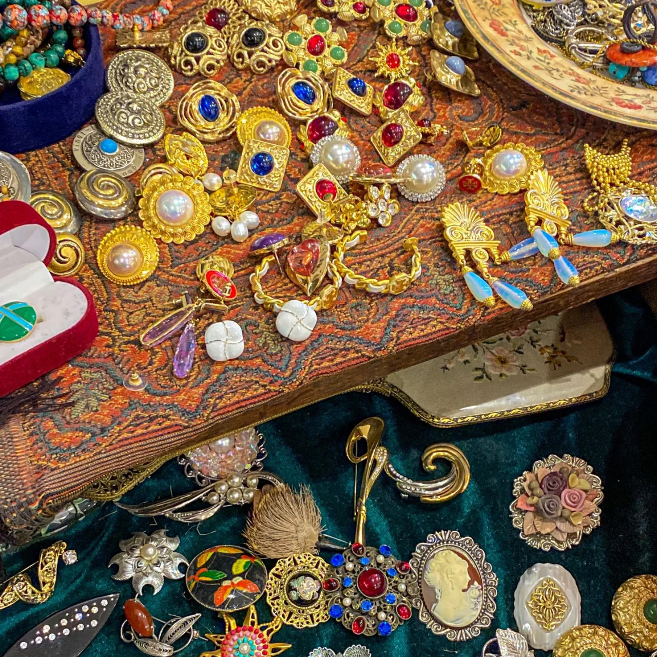 62 ear clip-ancient & gold oval pattern