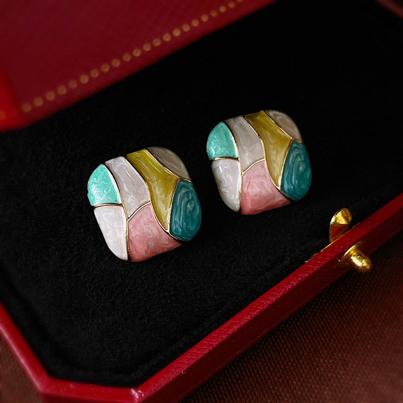125 silver needle-colorful oil necklace square