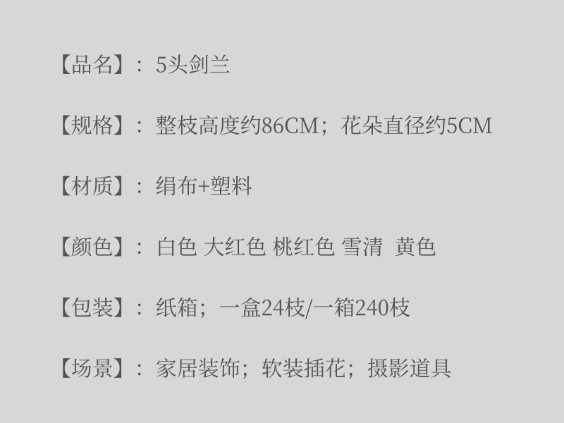 single stem 5 heads gladiolus-xueqing