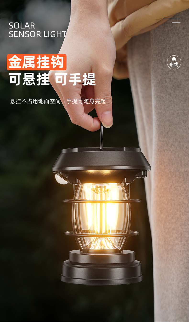 foreign trade exclusive for new outdoor solar sensor light household waterproof garden lamp atmosphere camping charging barn lantern