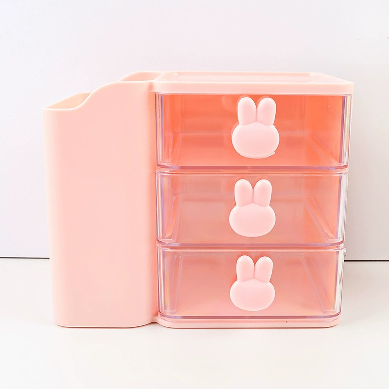 cartoon bunny desktop storage box drawer box transparent storage pen holder 中文版