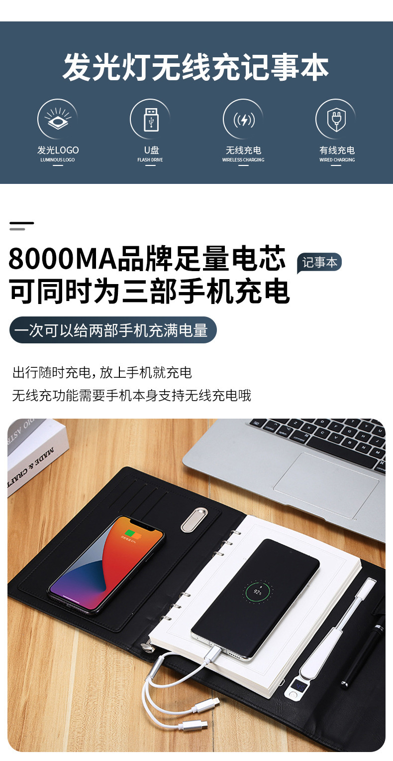 factory wholesale business gift luminous light with wireless charger led desk lamp u disk mobile power charging notepad