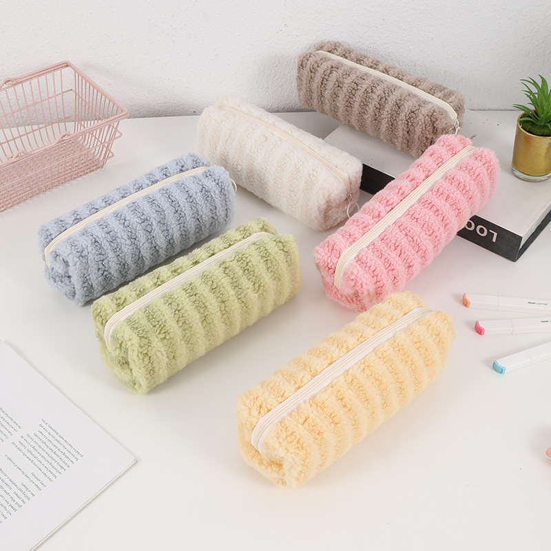 solid color pencil case plush pencil bag stationery case stationery pack striped pencil case fresh pencil case pen case 中文版
