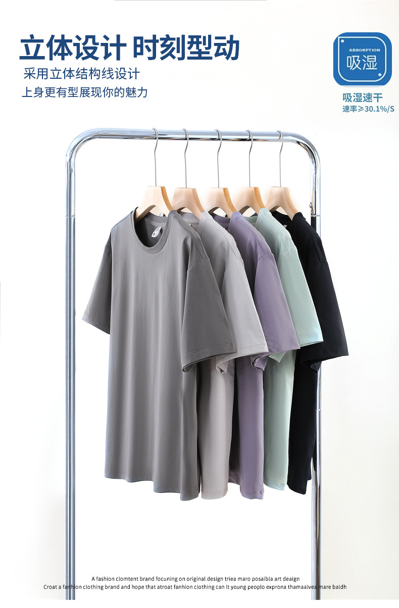 summer new des cotton quick-drying t-shirt casual solid color cool breathable short sleeve loose round neck men's and women's same half sleeve 中文版