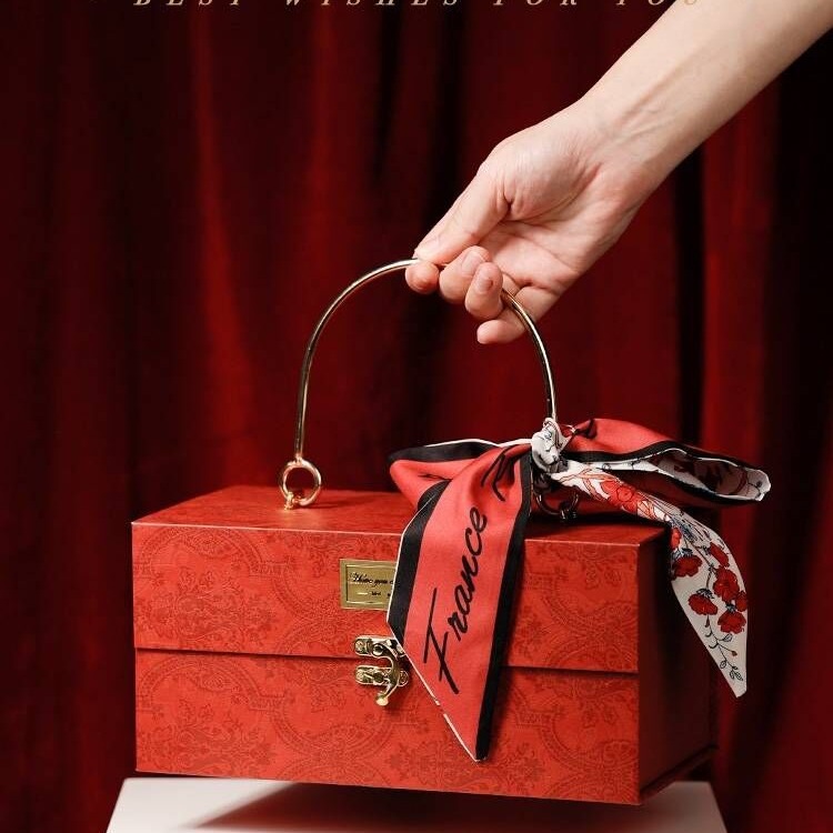 wine red + silk scarf; large size 30*16 * 15cm