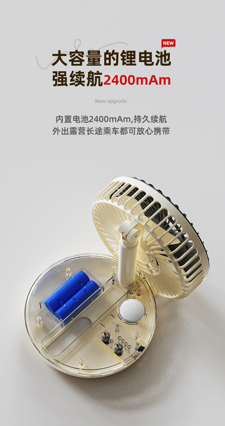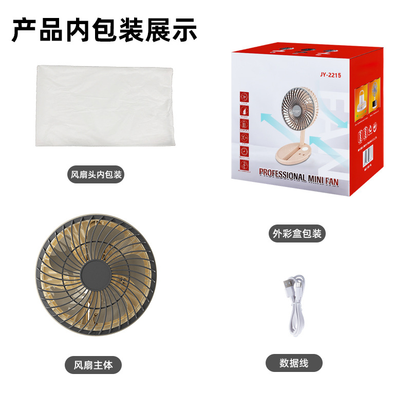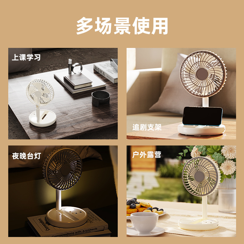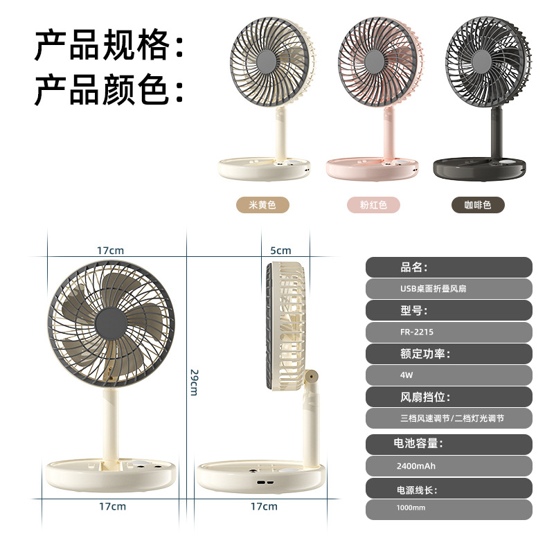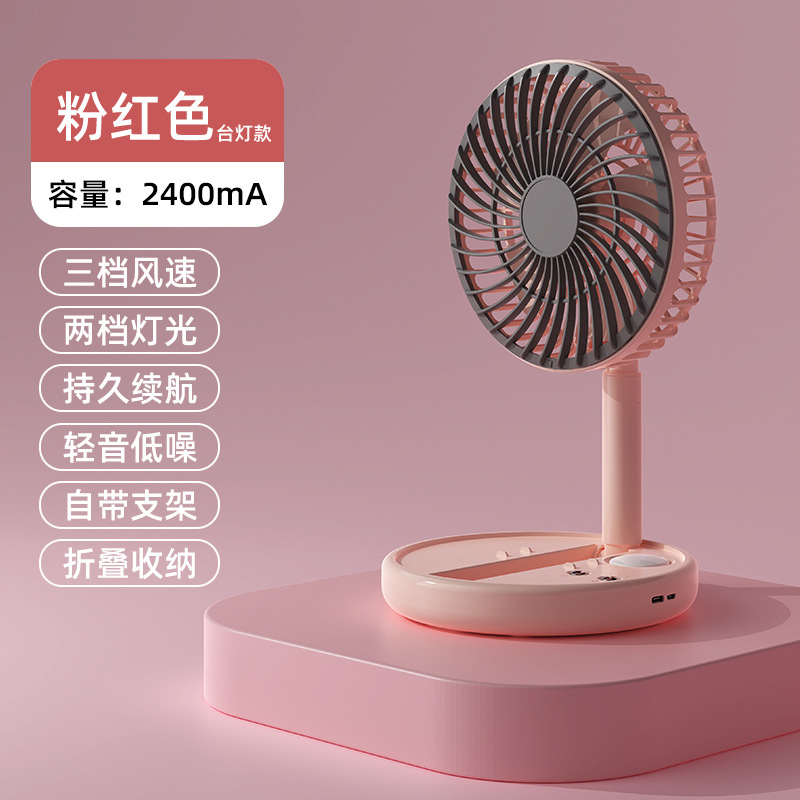 跨境USB风扇充电3挡风2挡灯光折叠便携随身长续航迷你小风扇台扇