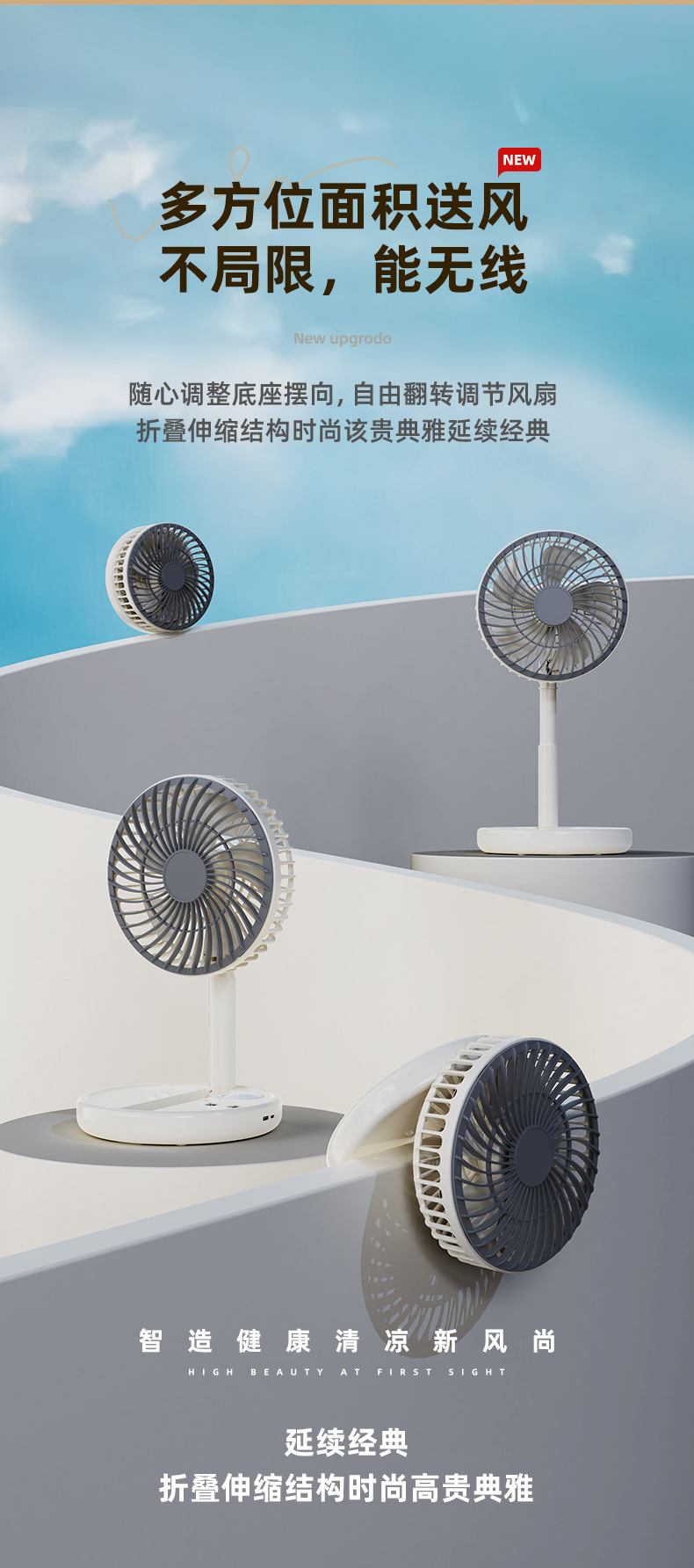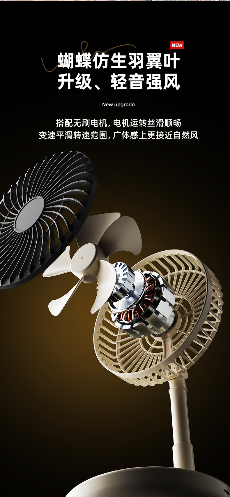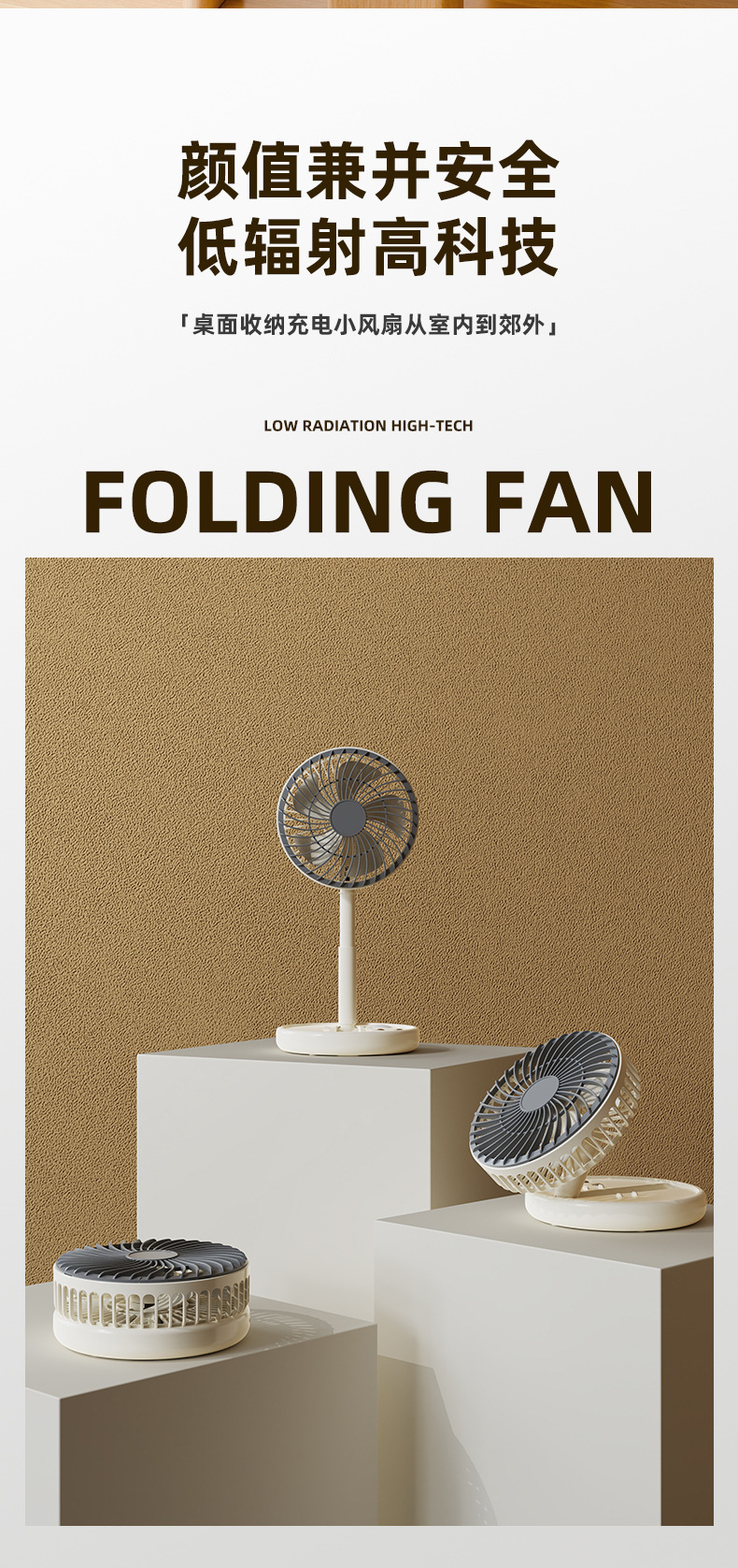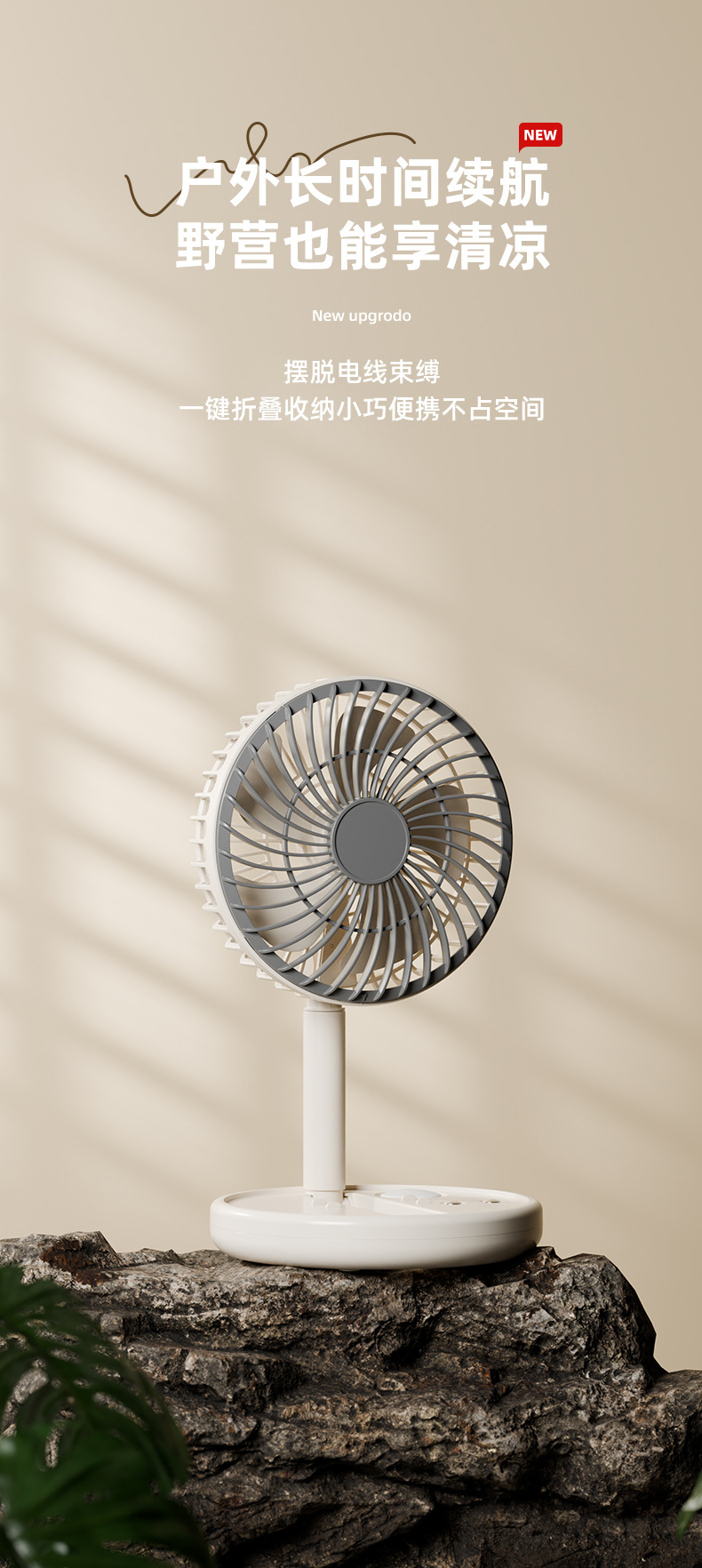 跨境USB风扇充电3挡风2挡灯光折叠便携随身长续航迷你小风扇台扇