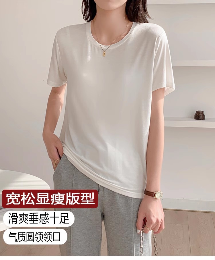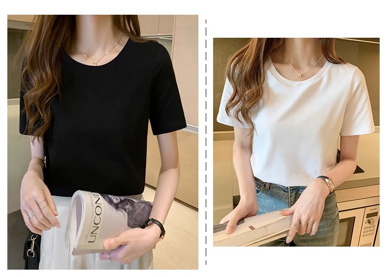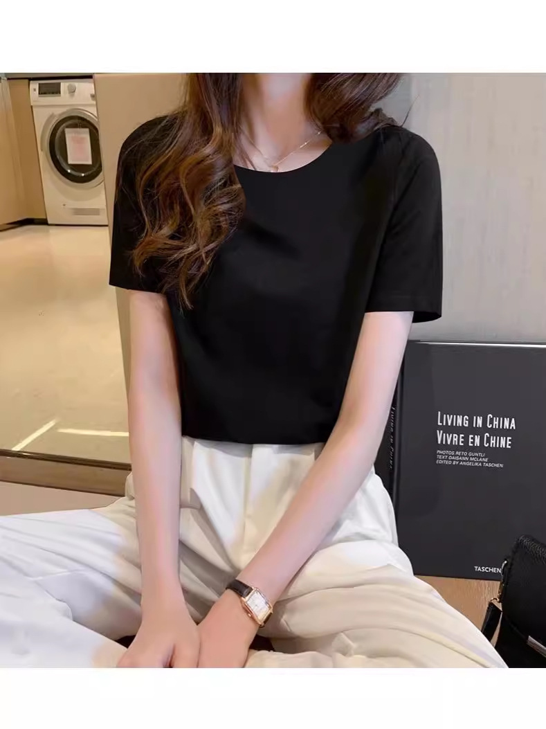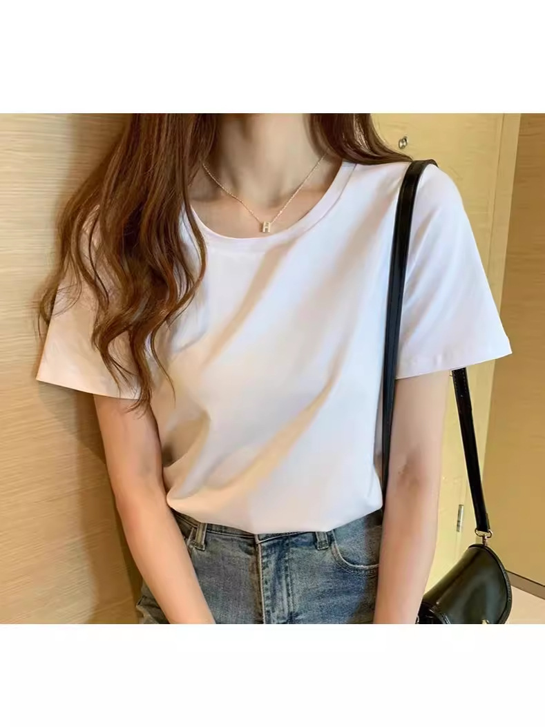 white t-shirt women's short-sleeved summer 2025 new loose thin bottoming shirt inner wear pure color slimming top 中文版