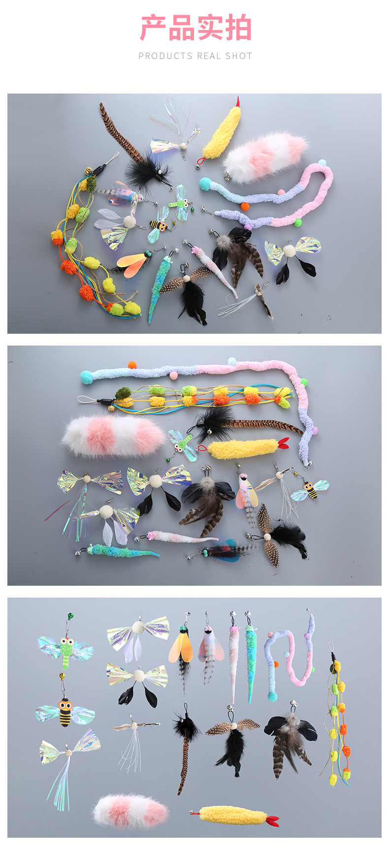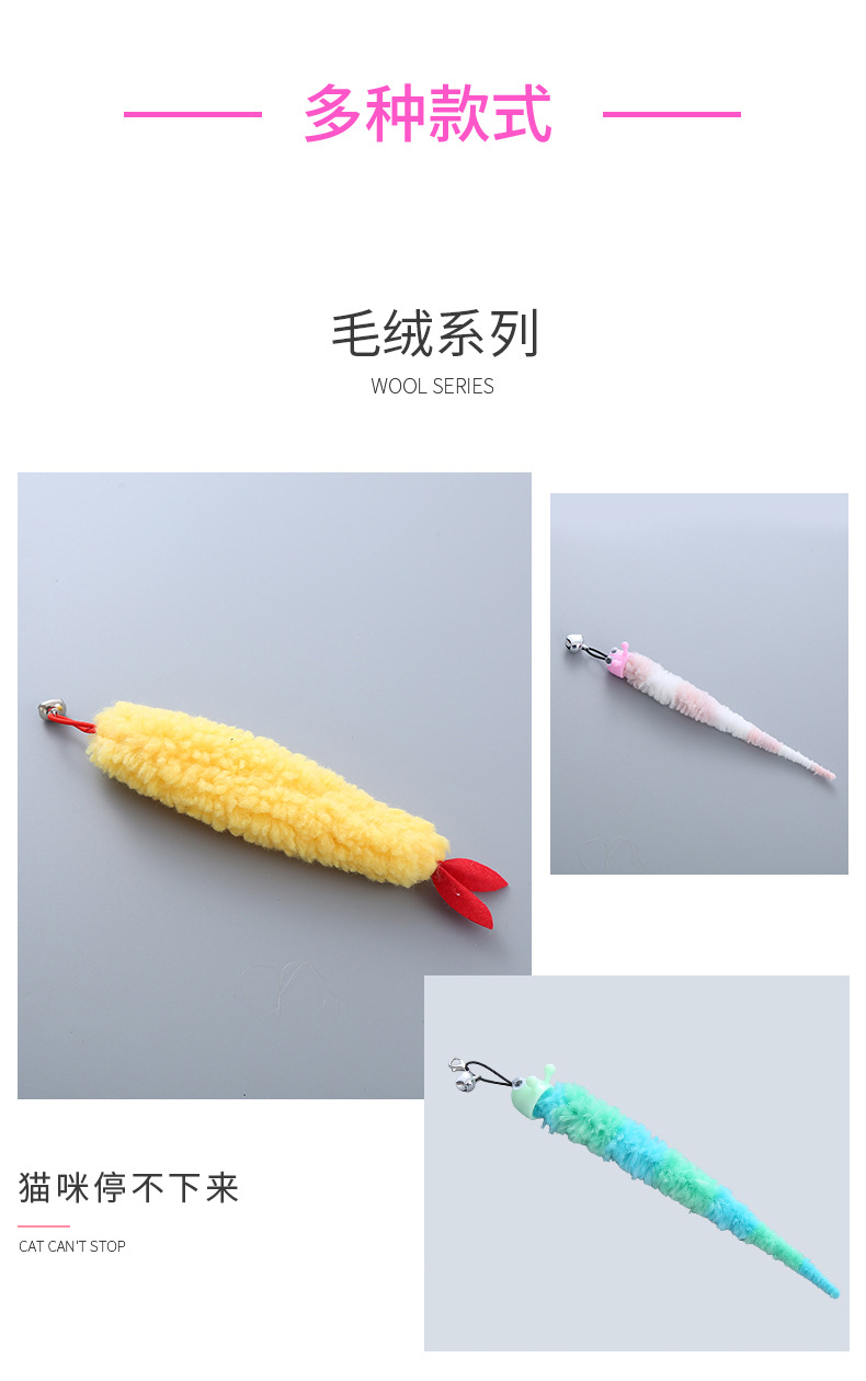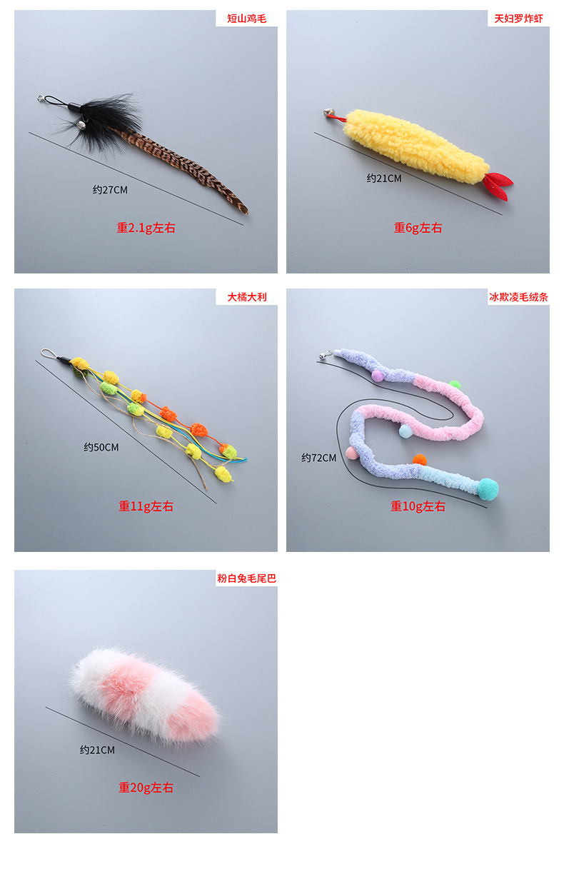 factory wholesale cross-border pet supplies plush sequins feather teasing stick replacement head interactive play toys 中文版