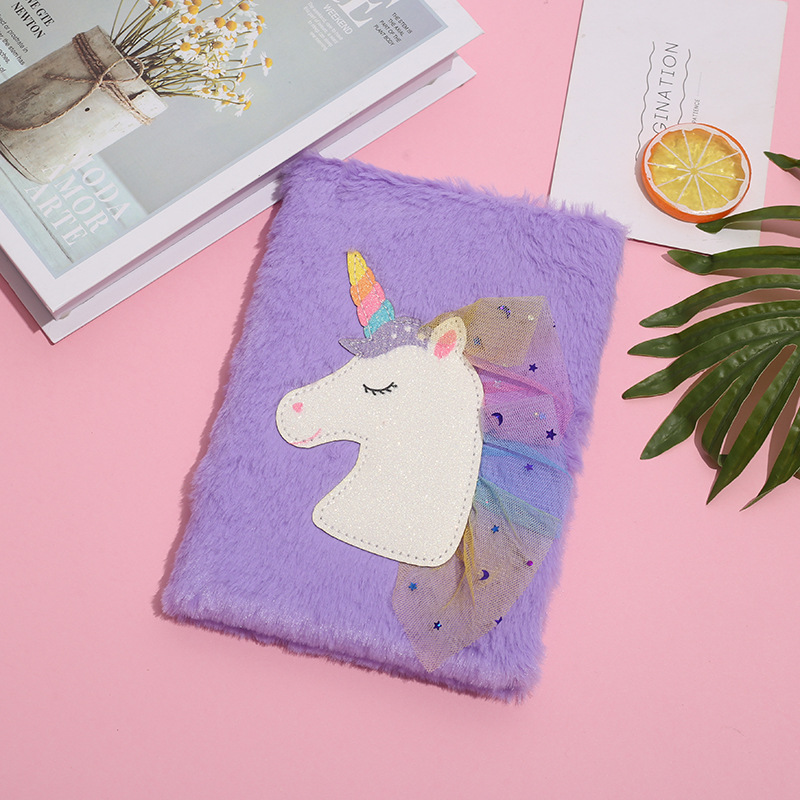 new cartoon plush unicorn notepad with lock student note diary handmade journal book wholesale