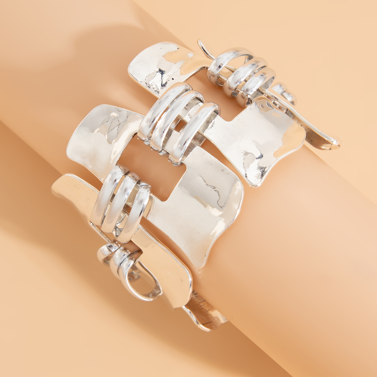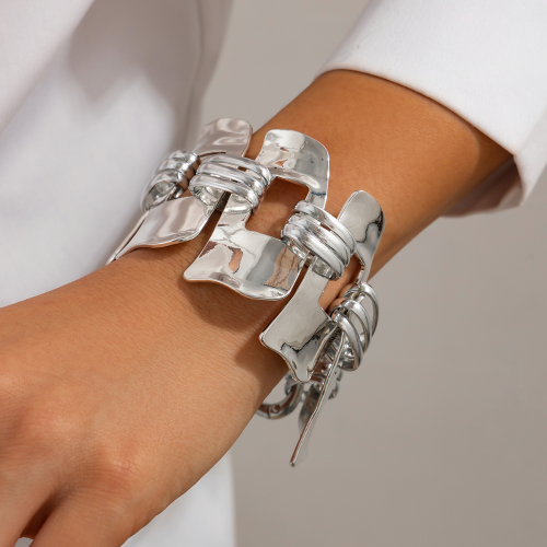 europe and america cross border ornament punk geometric hollow wide bracelet fashion irregular stitching alloy bracelet