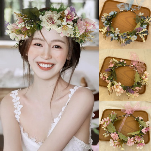 spring and summer new artificial fabric flower wearing flower headdress for han chinese clothing fairy garland photo taking bridesmaid headband accessories 中文版