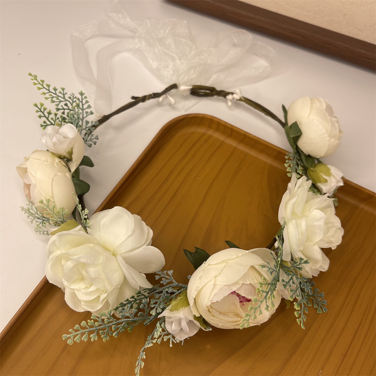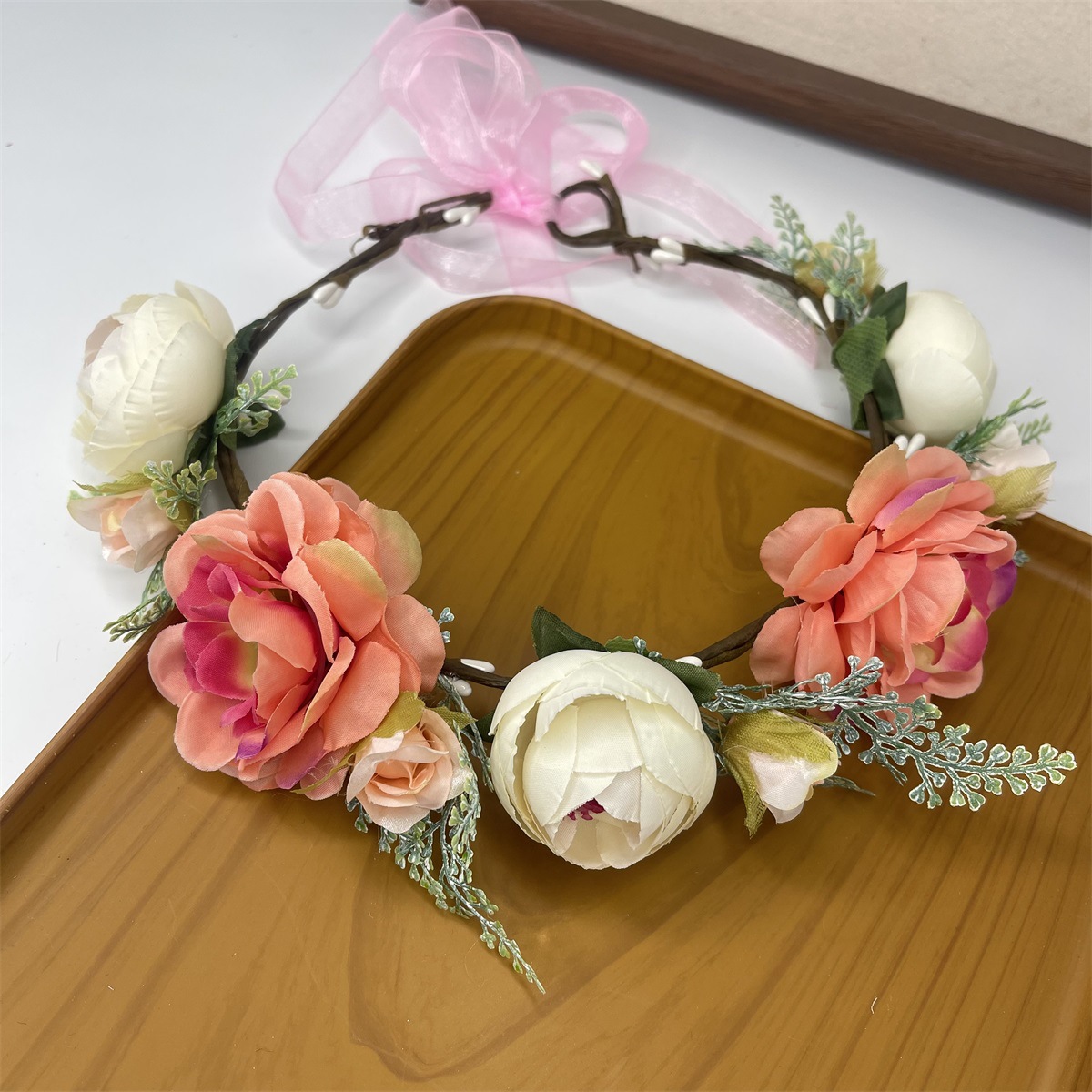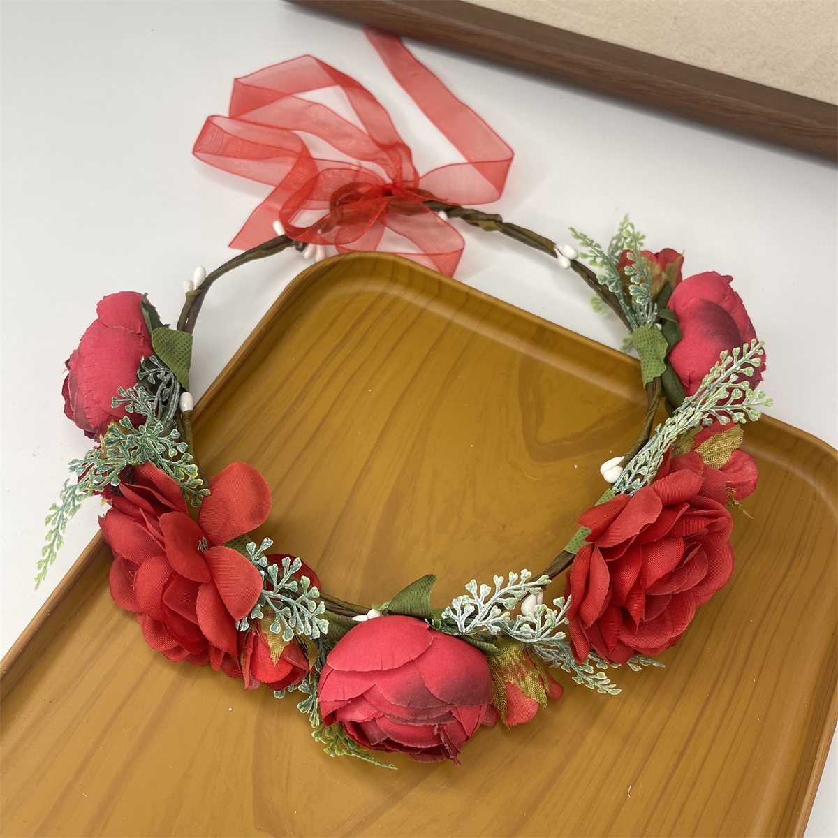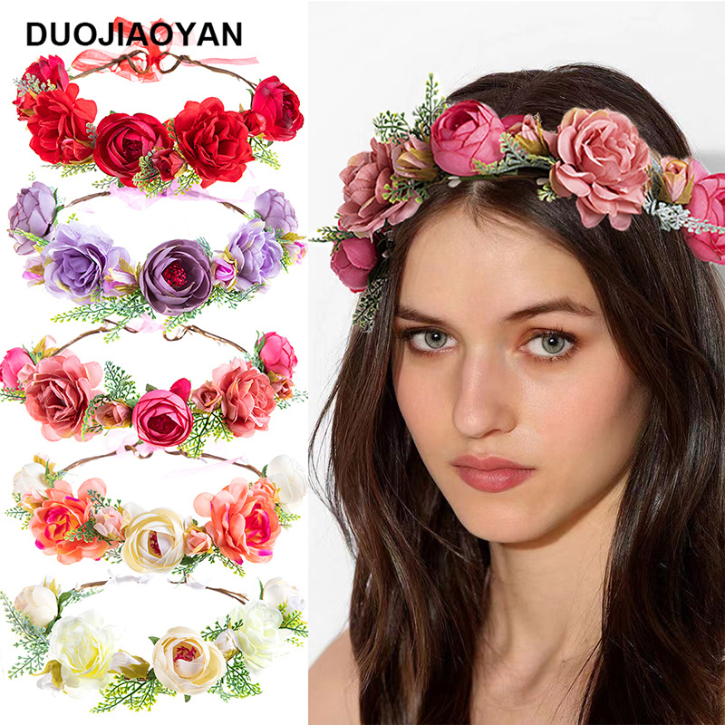 The size of the wreath is approximately 54CM in circumference (adjustable), with large flowers measuring 7cm in diameter and small flowers measuring 5.5cm in diameter.