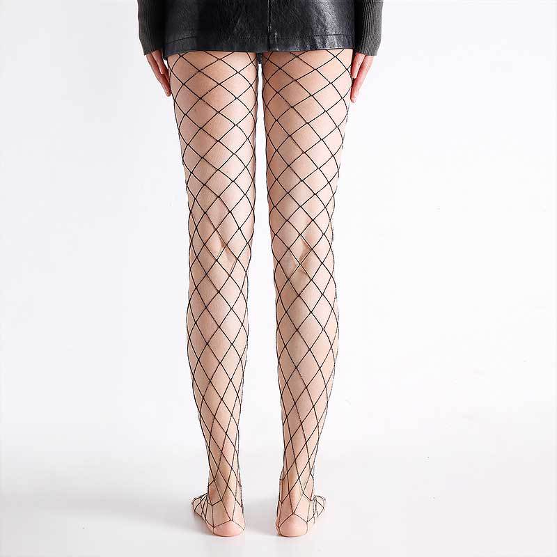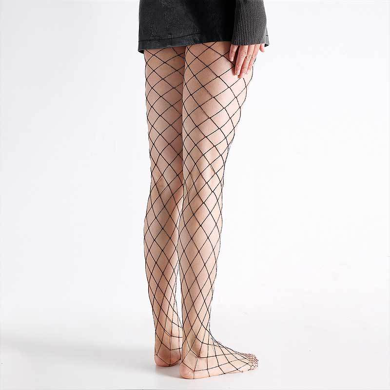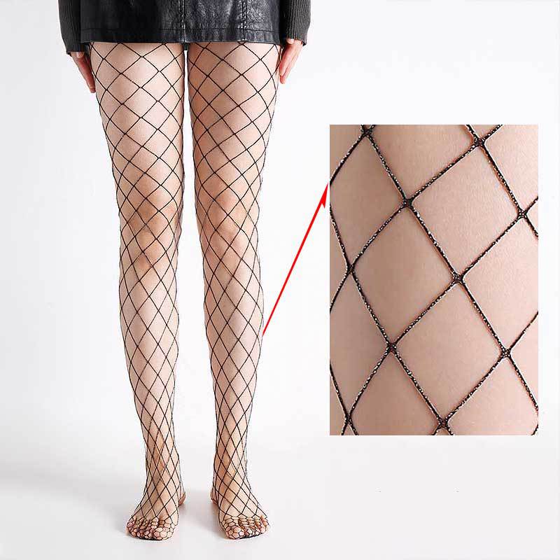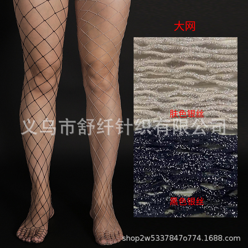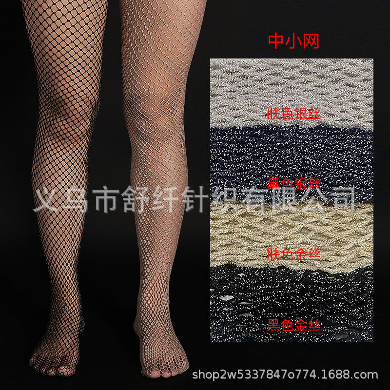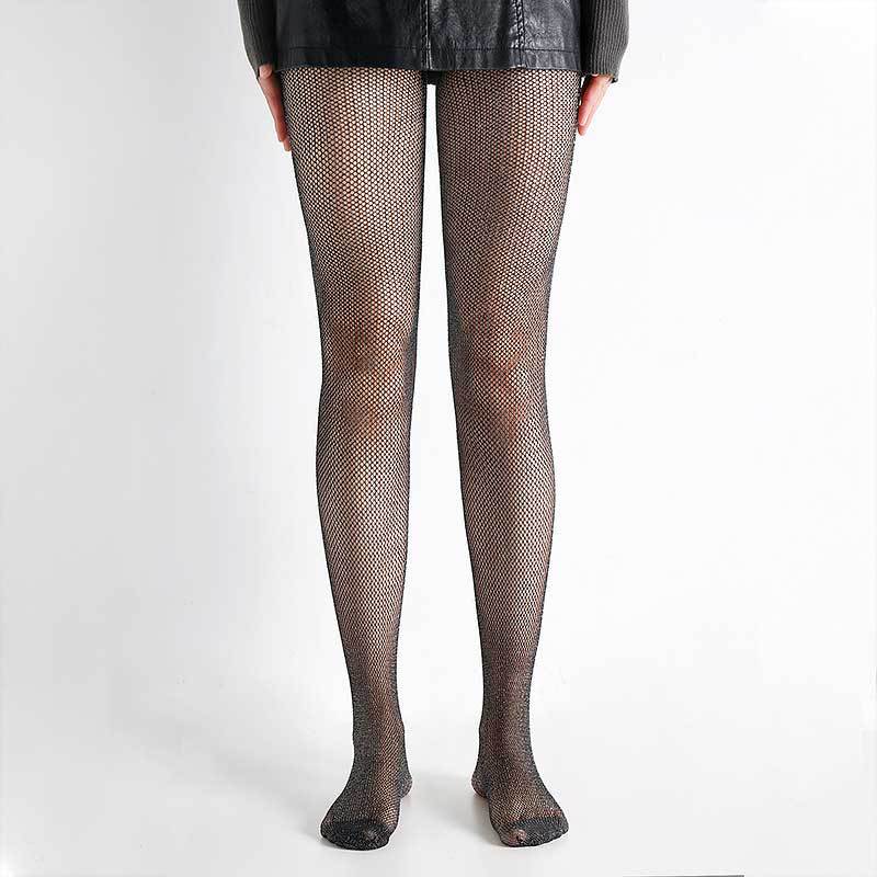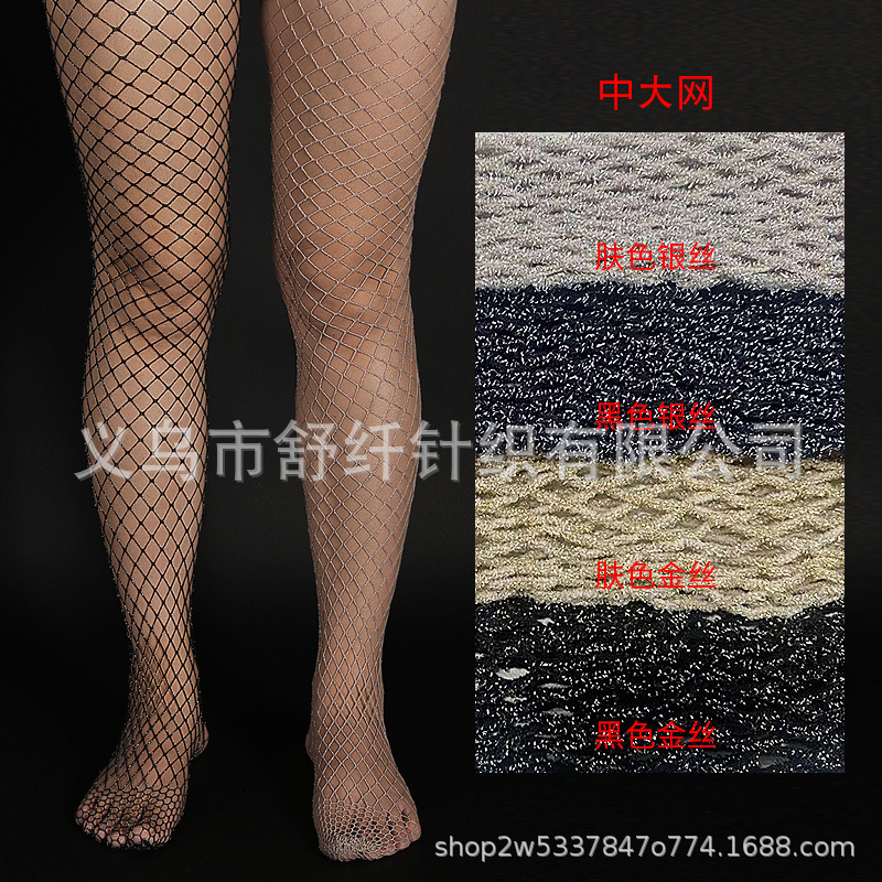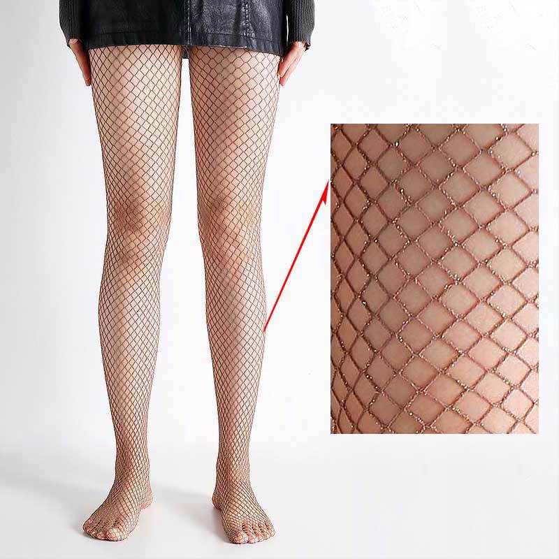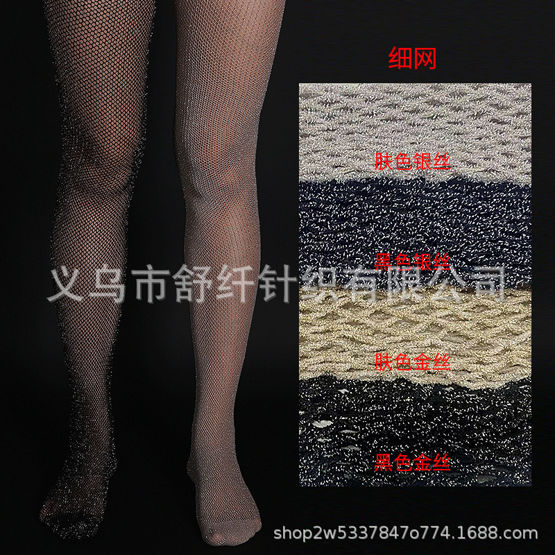 Export cross-border Glittery ladies fishnet tights with gold and silver mesh pattern, hollow grid stockings, European and American trend, in stock