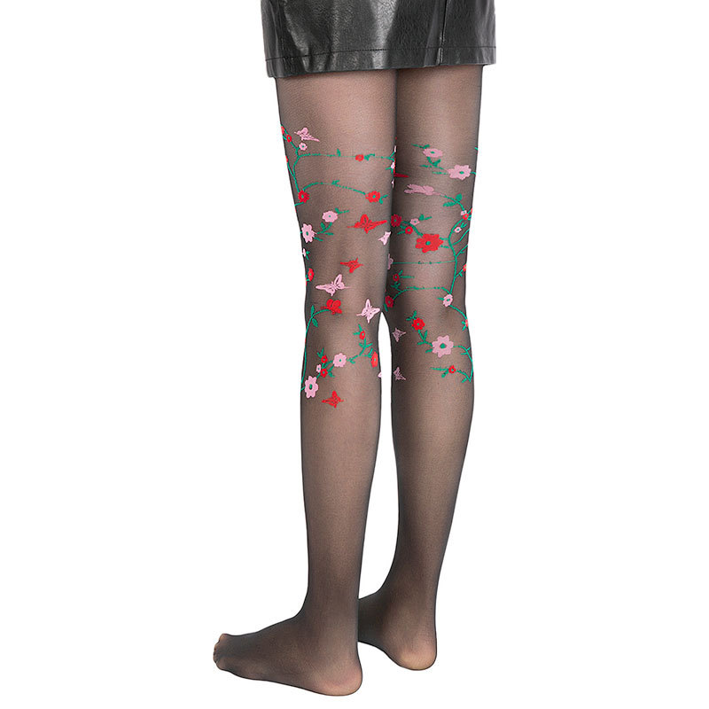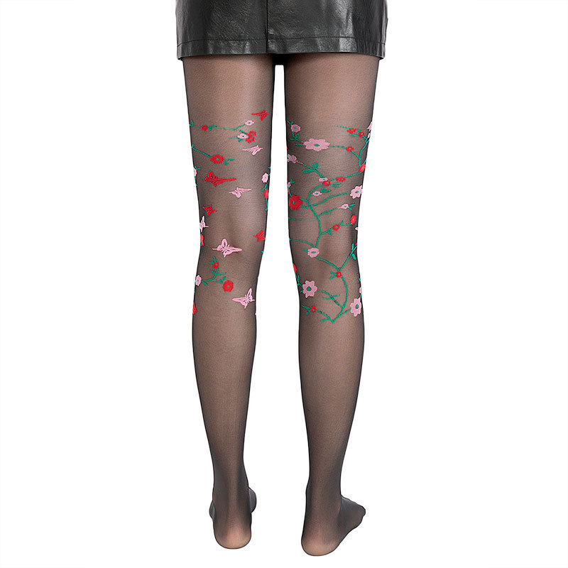 Fashionable European and American sexy thin new products, ladies multi-color jacquard stockings with butterfly flowers and added gauze leggings