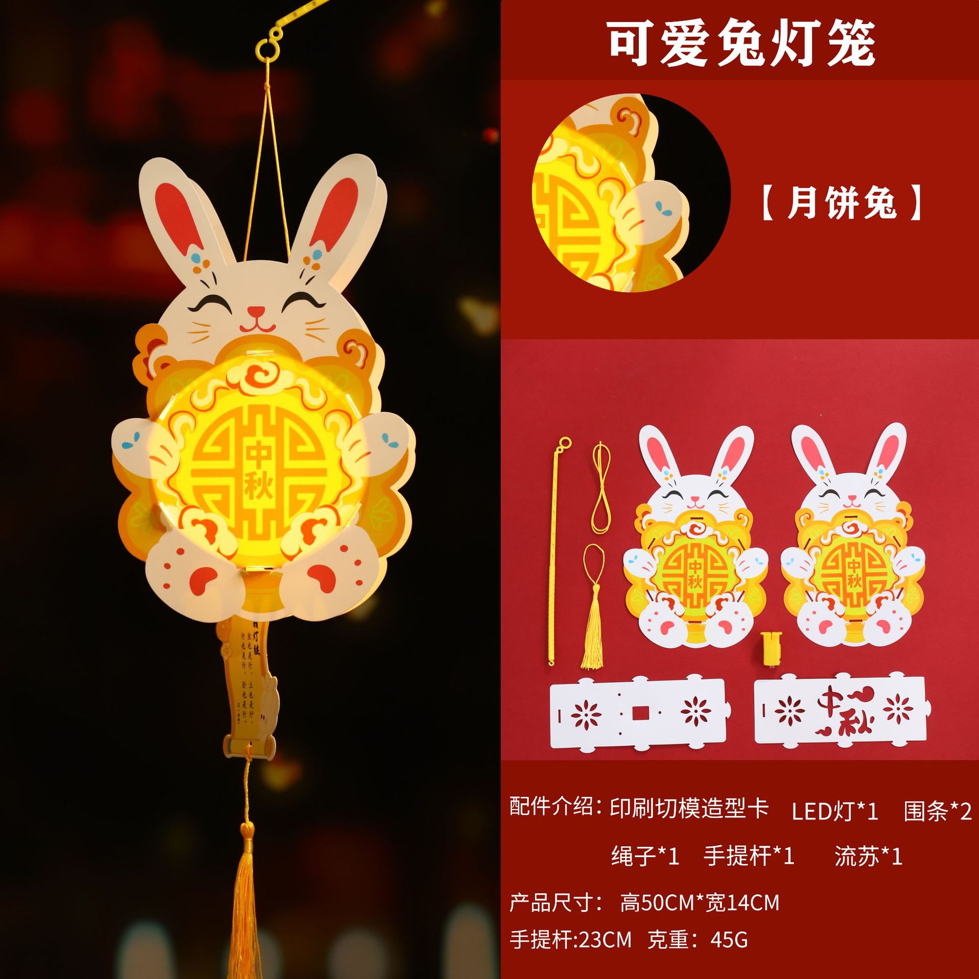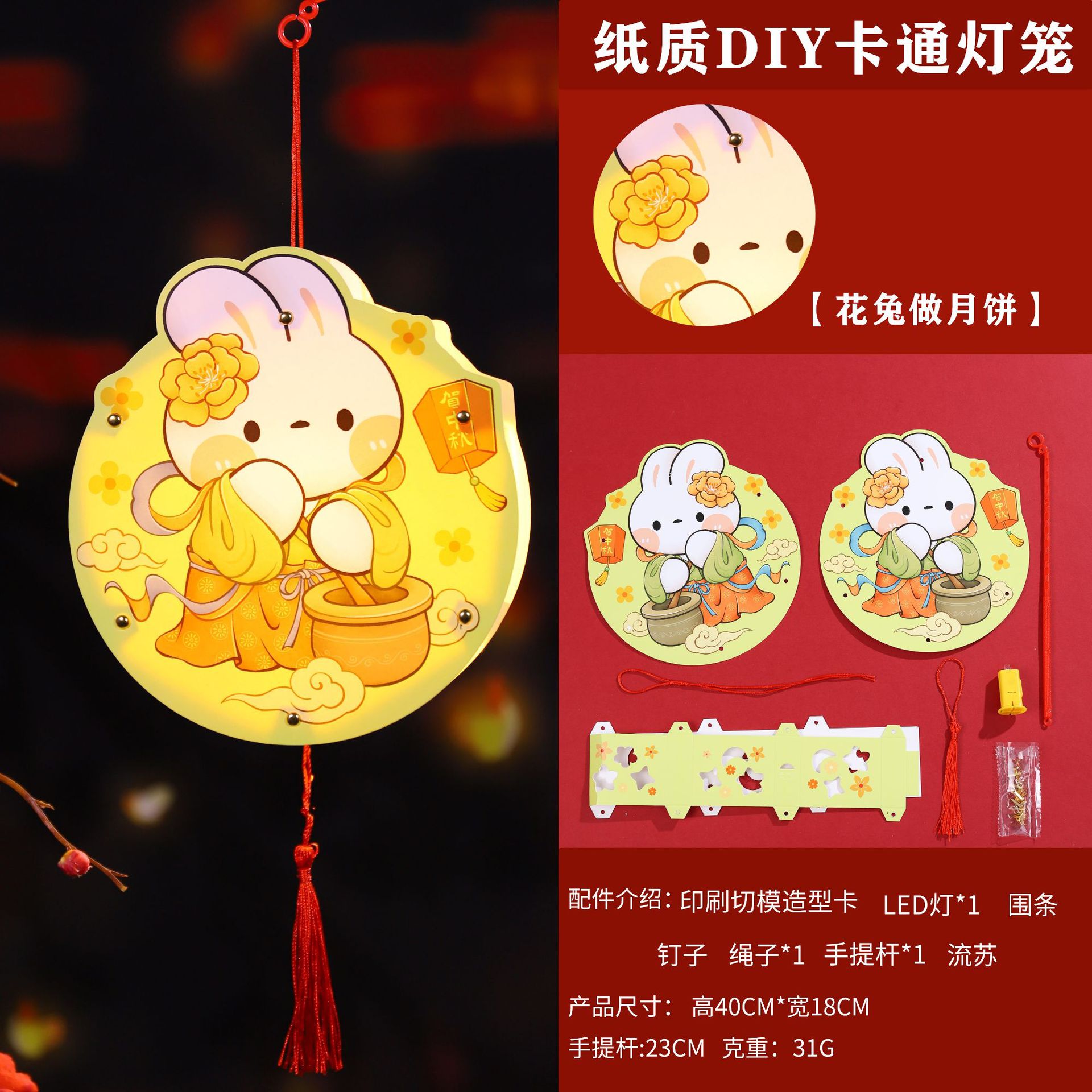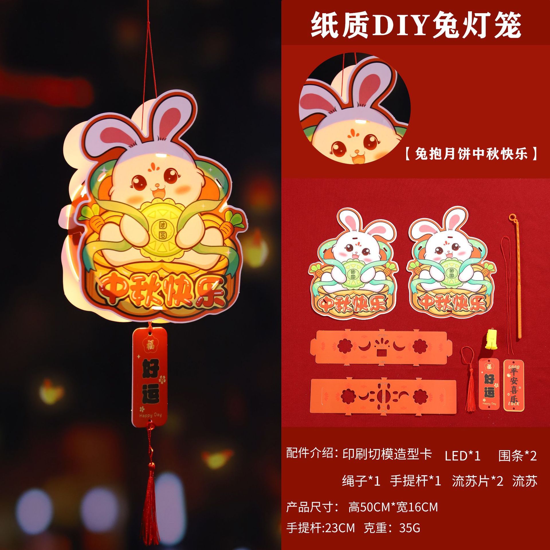 paper diy rabbit lantern-w [rabbit holding moon cake happy mid-autumn festival]]