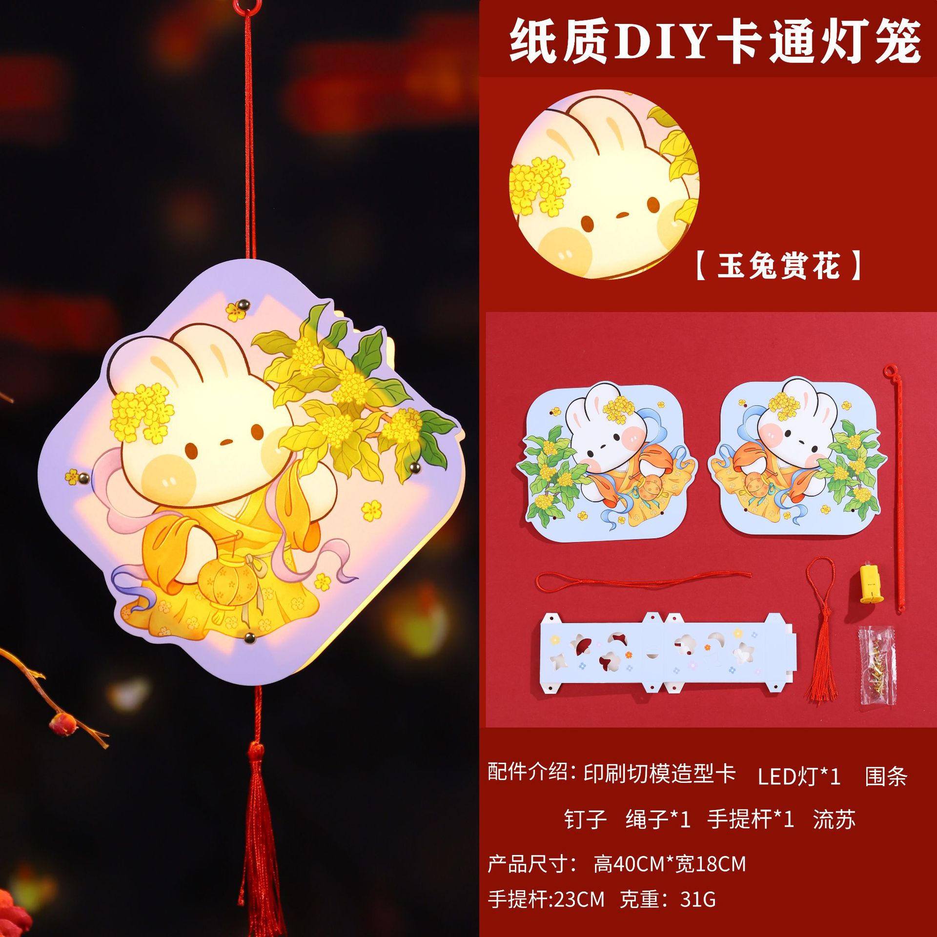 paper diy rabbit lantern-w [good luck flower lying rabbit]]