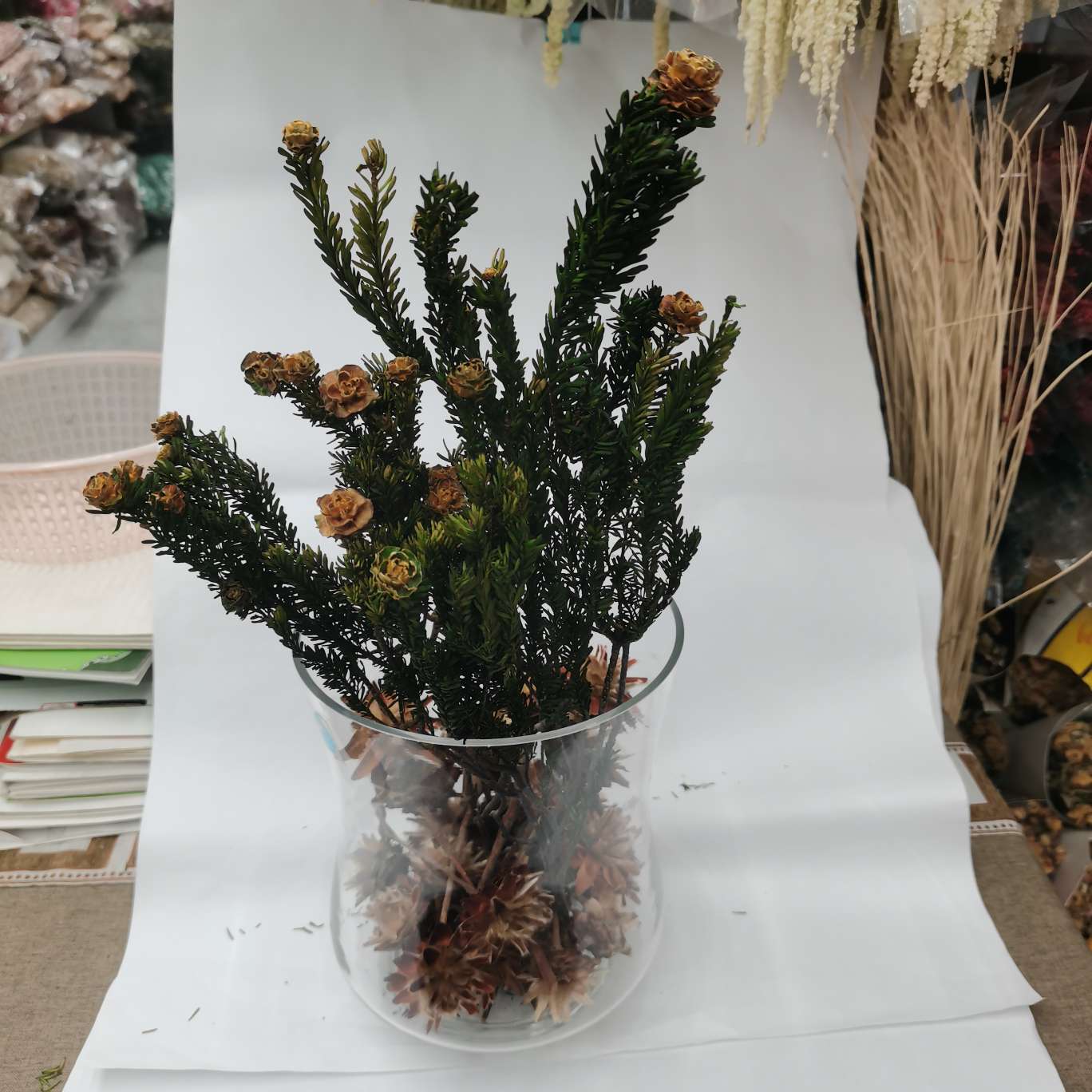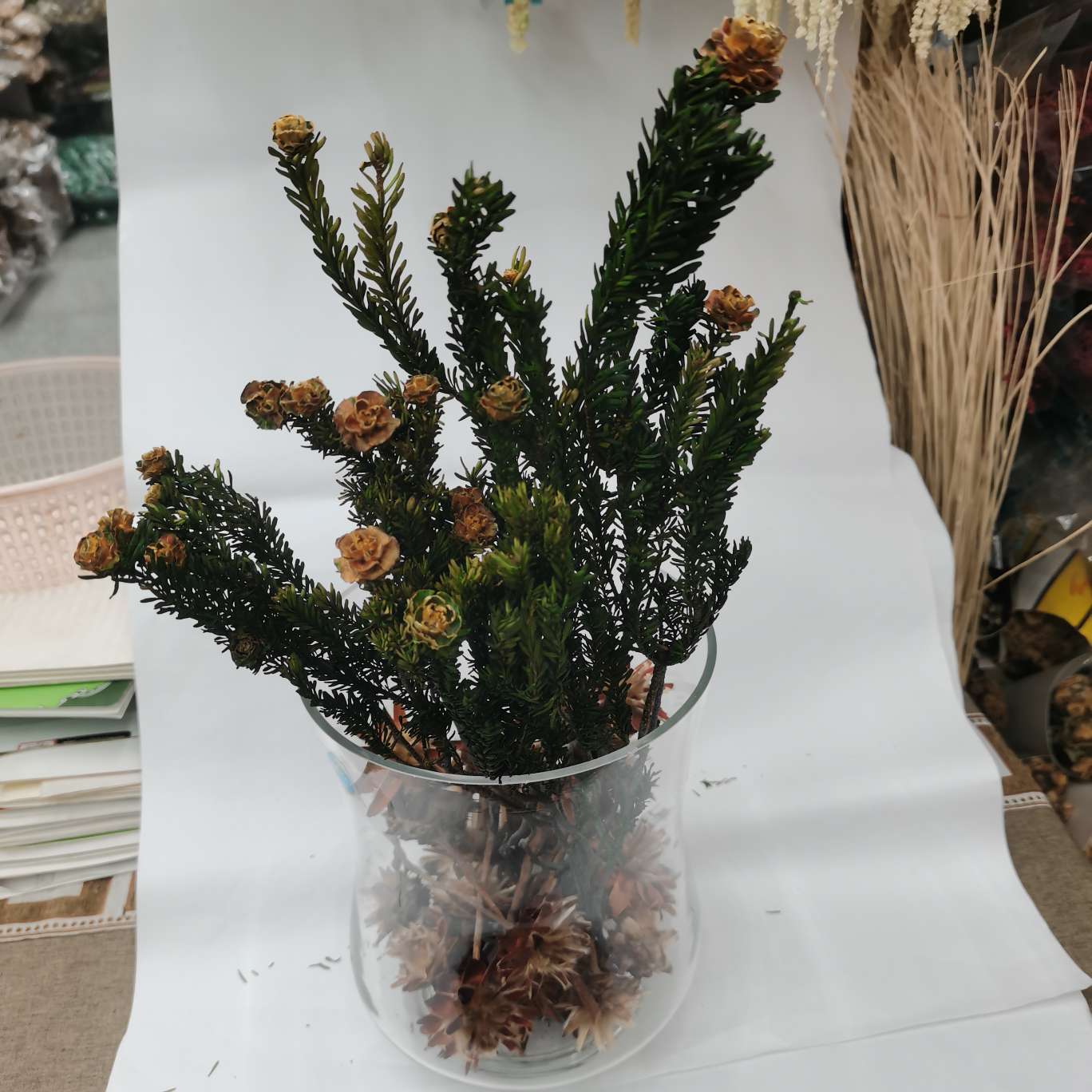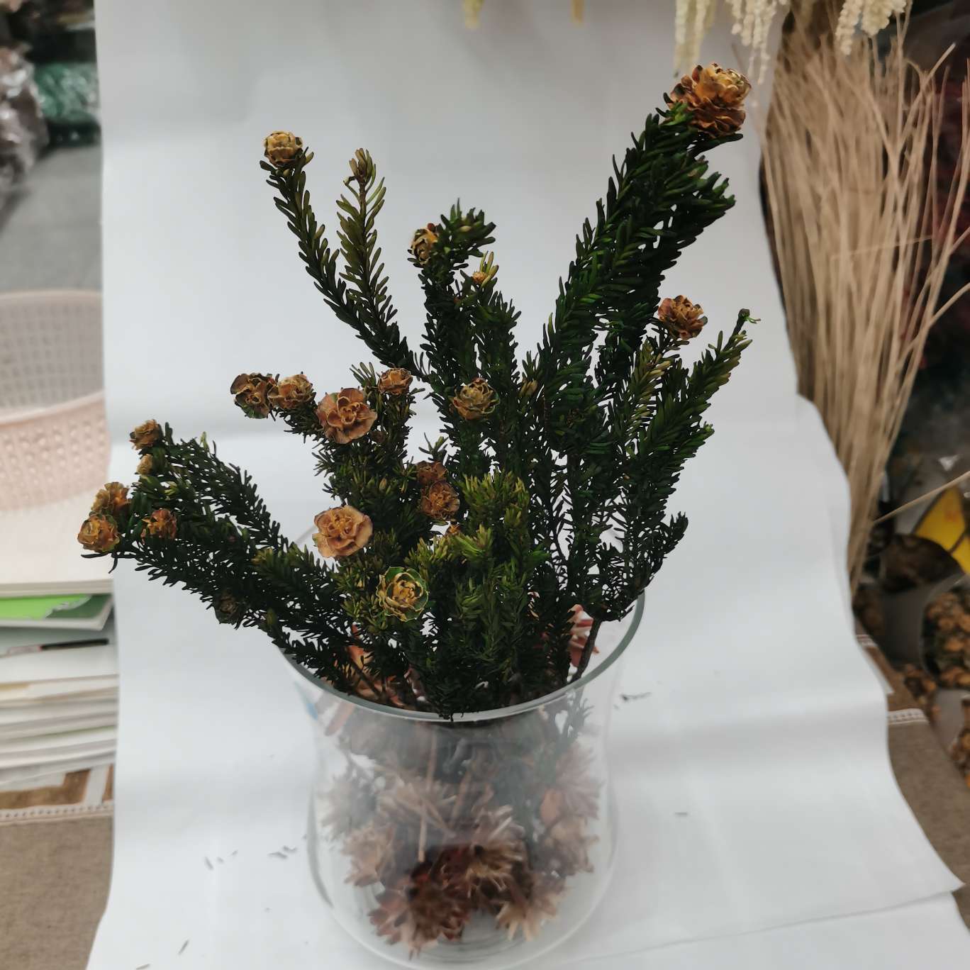 果实。这种干燥花在室内装饰中很受欢迎,能为房间增添自然和温馨的氛围。它们可以摆放在花瓶中,也可以挂在墙上作为装饰,是一种美观且实用的家居装饰品。