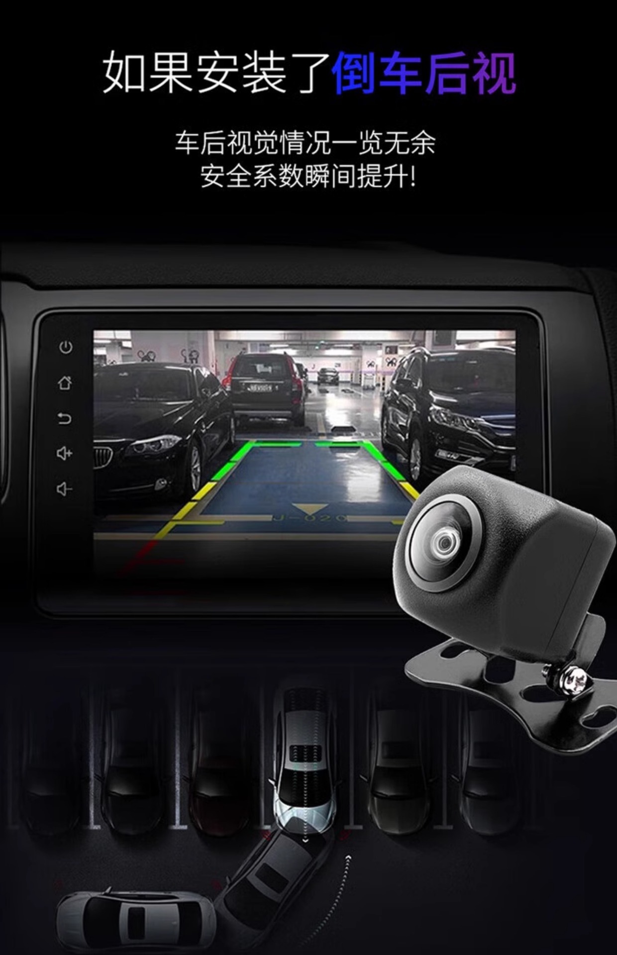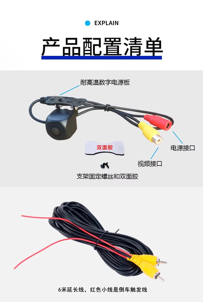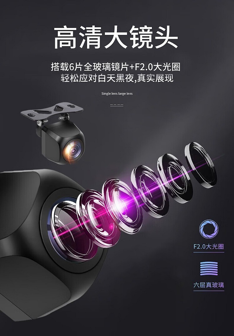 ahd1080p/ccd three-cut black light night vision 2 million hd reversing +6 m line