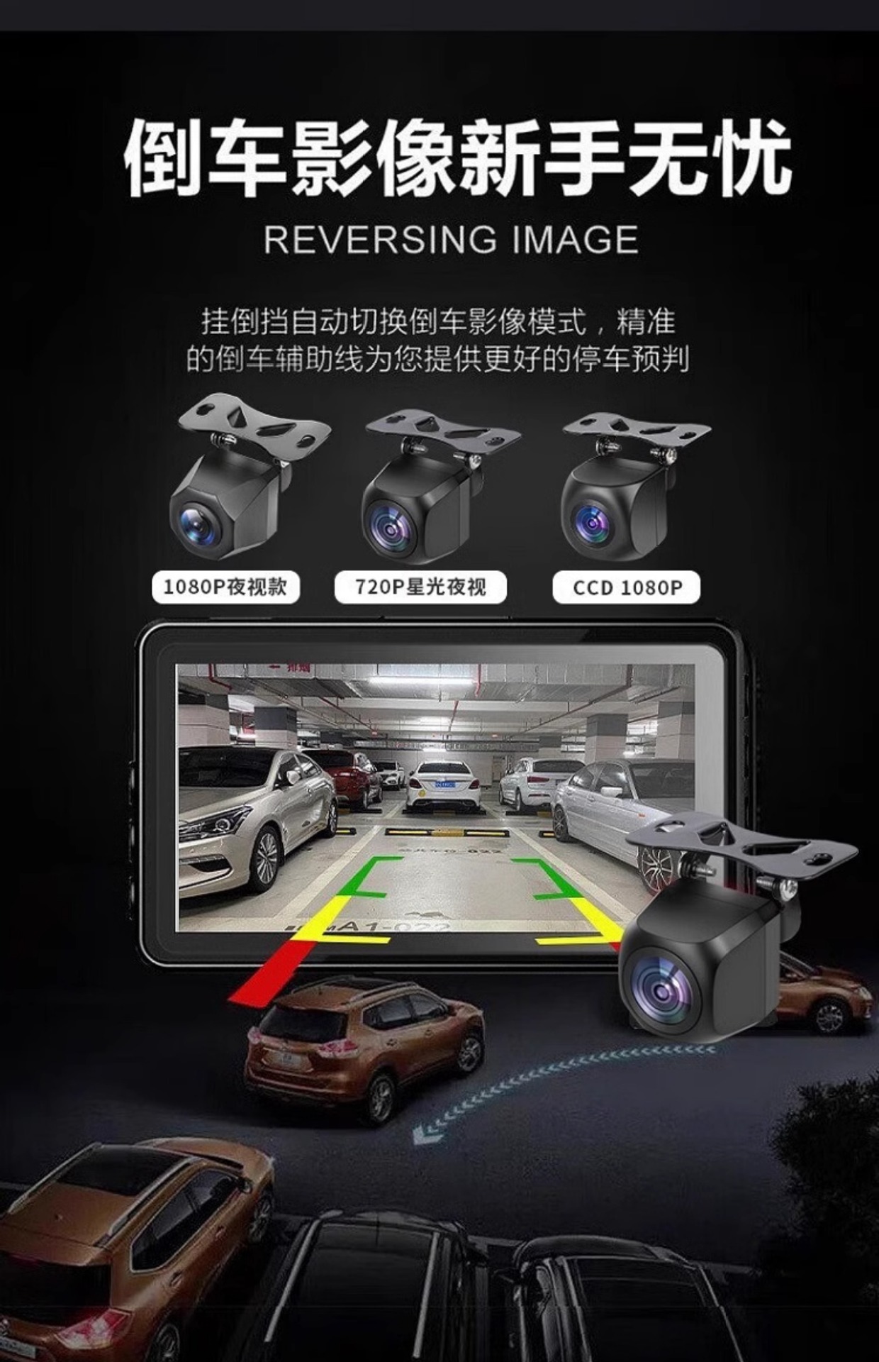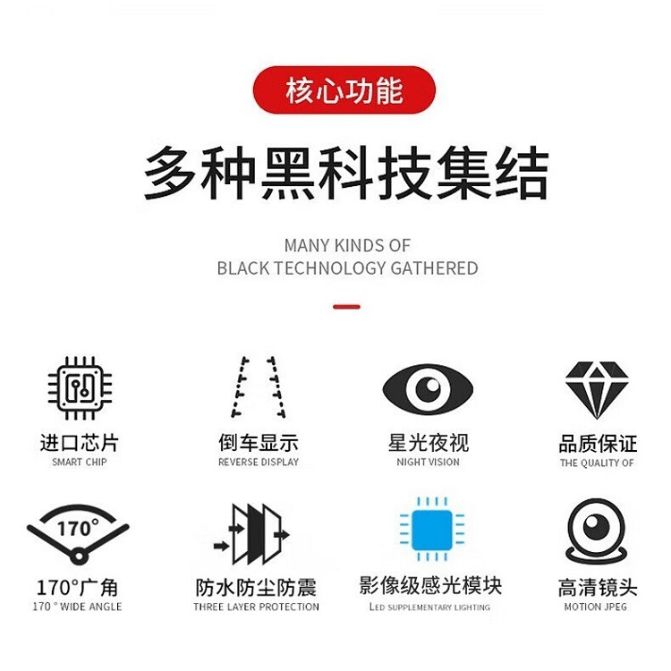 ahd1080p/ccd three-cut black light night vision 2 million hd reversing (no wire)