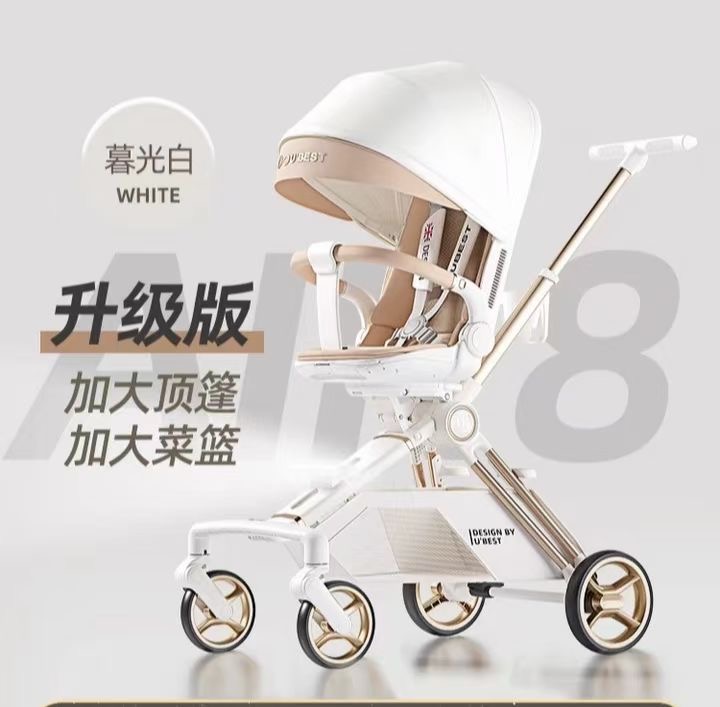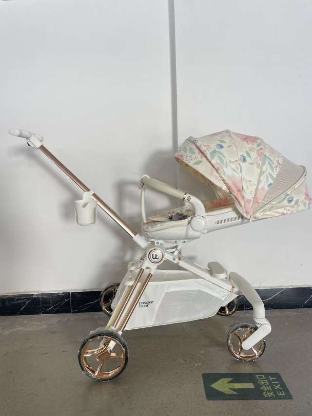 Baby stroller with reclining function, lightweight, foldable, two-way, high-viewing platform. Easy to store, aluminum frame stroller.