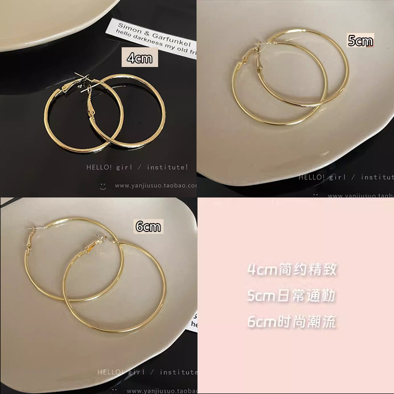 7cm gold big circle earrings-silver needle