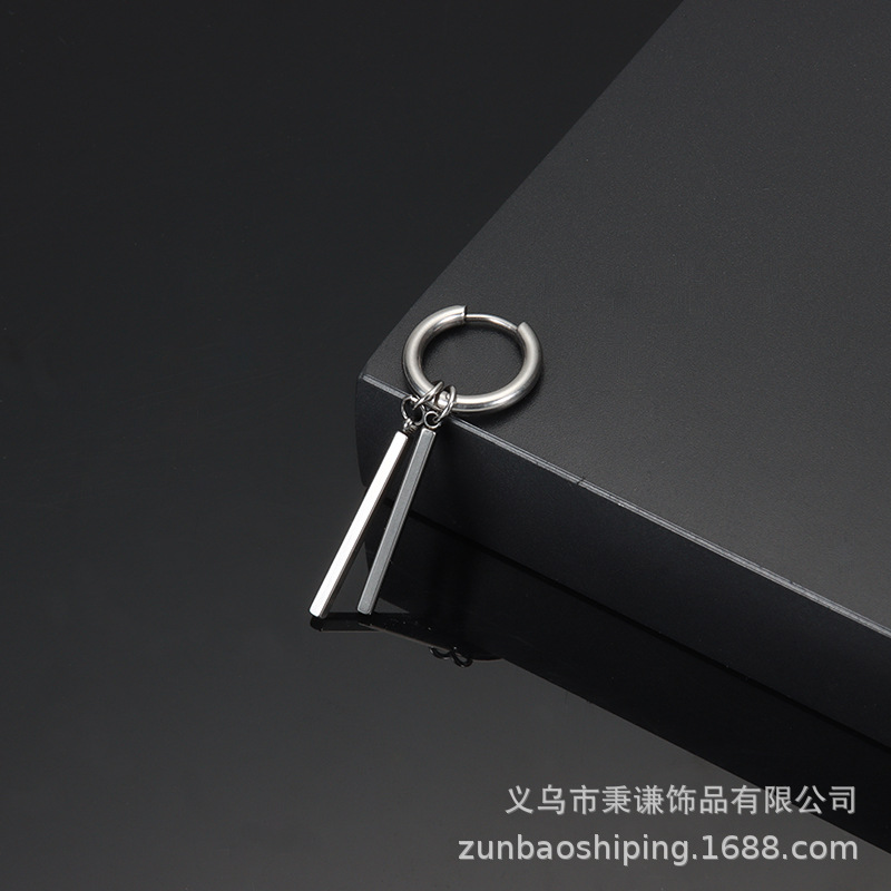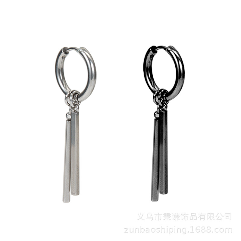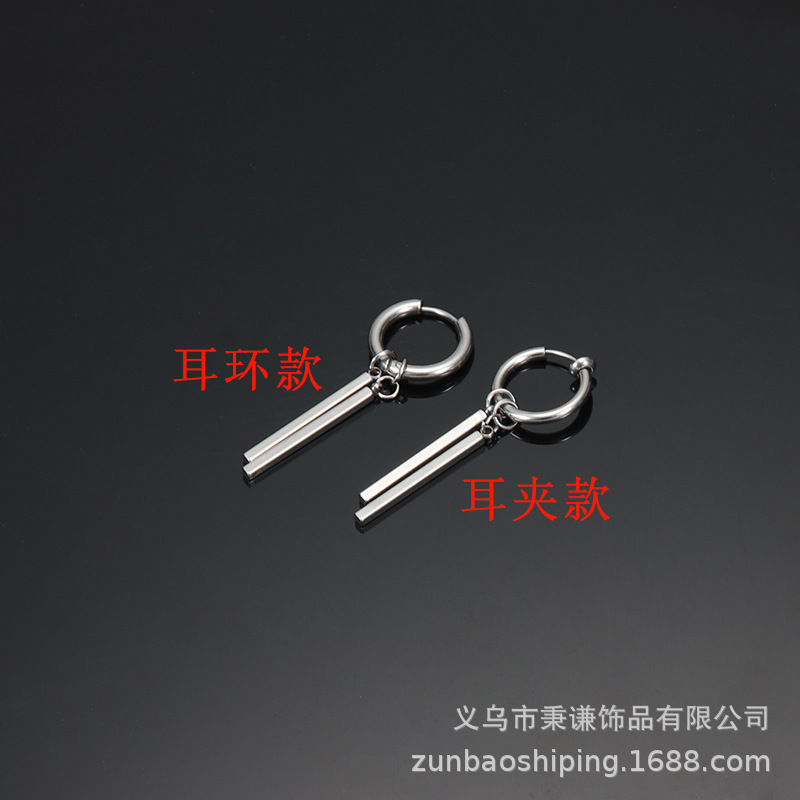 e007 steel color two-side stick earrings, 1