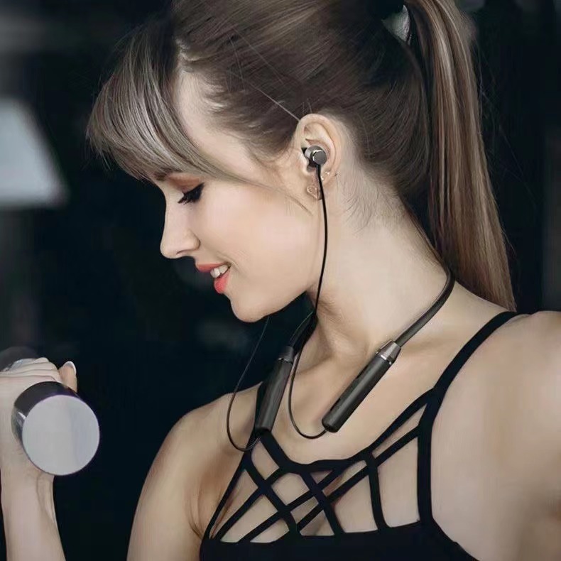 black metal bluetooth halter headset (bag + charging cable manual