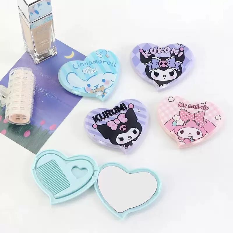 cute sanrio heart-shaped mirror comb 2-in-1 clow m melody cinnamoroll babycinnamoroll ins mirror + hairdressing comb