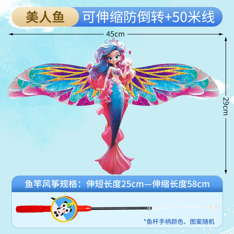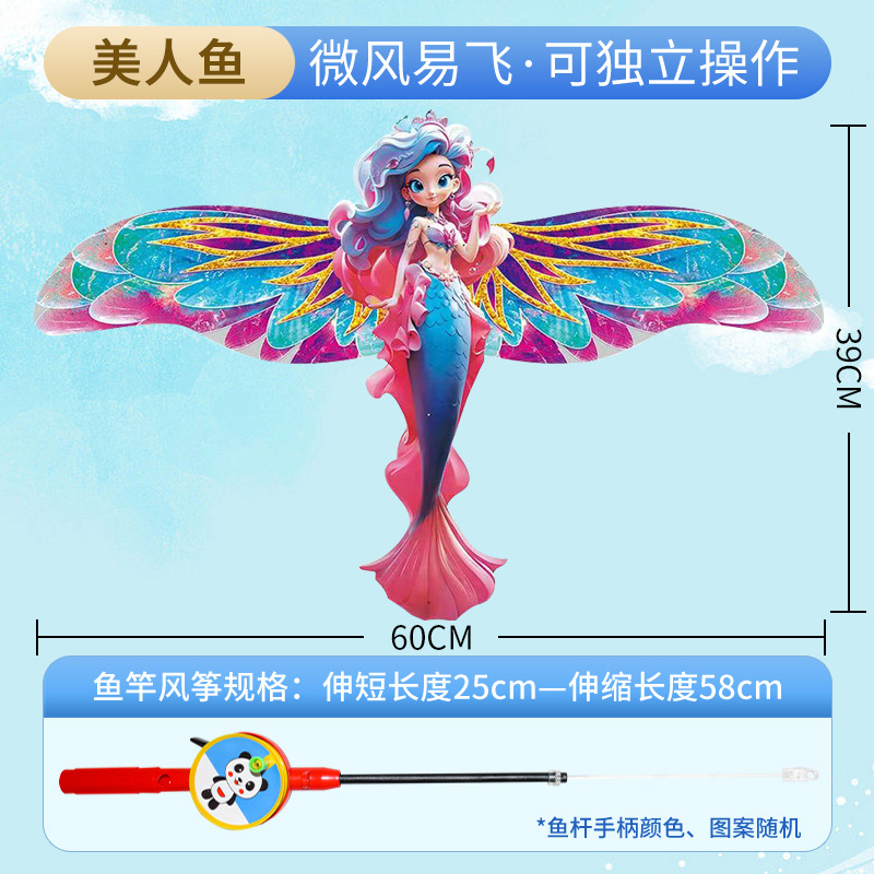 45cm large dynamic mermaid rice kite + 60cm fishing rod
