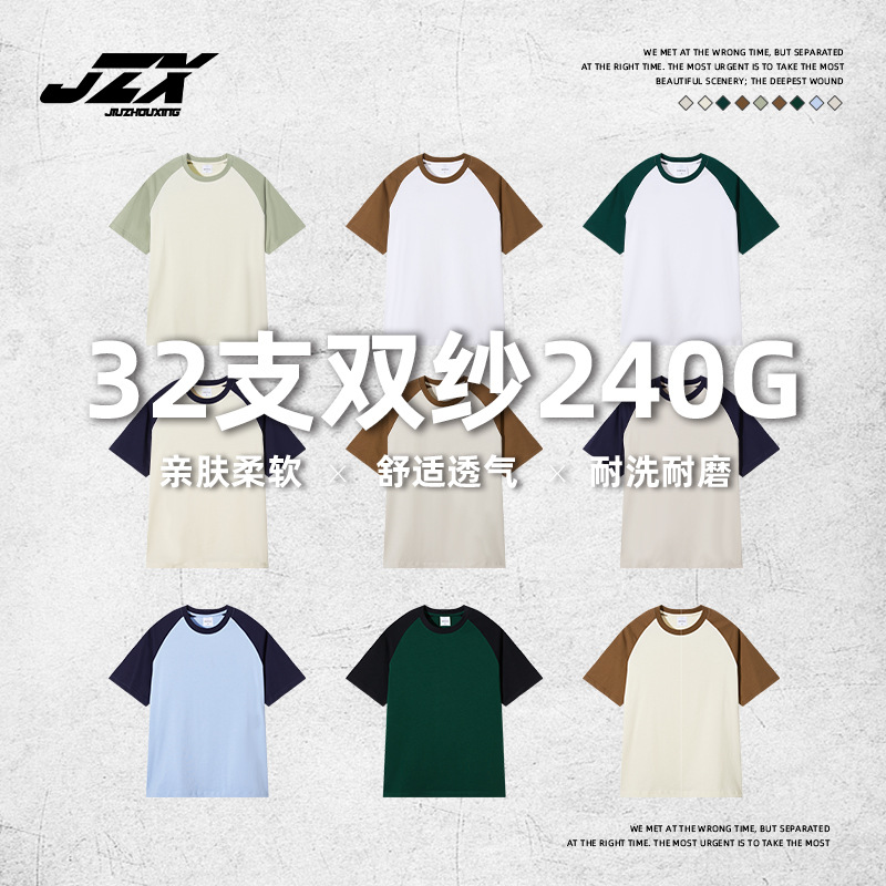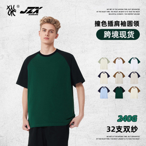 jzx men's clothing contrast color short sleeve cotton men's 240g men's round neck american retro loose fashion brand loose-fitting casual t-shirt 中文版