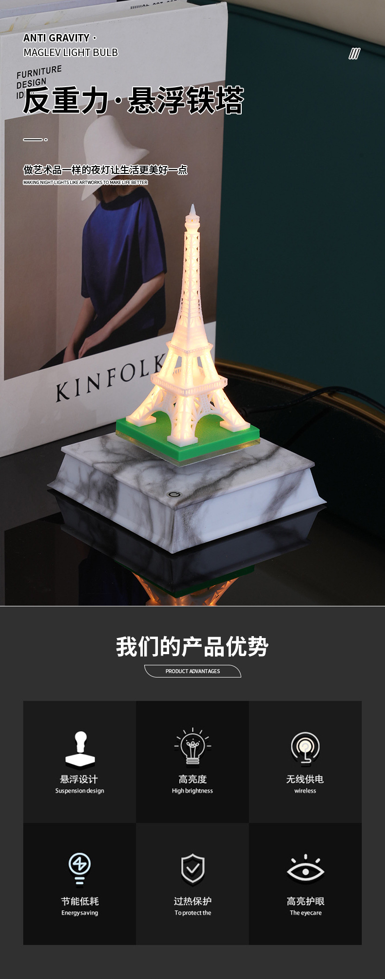modern art anti-gravity suspension tower 360 degrees free rotation suspension lamp decoration desktop decoration 中文版
