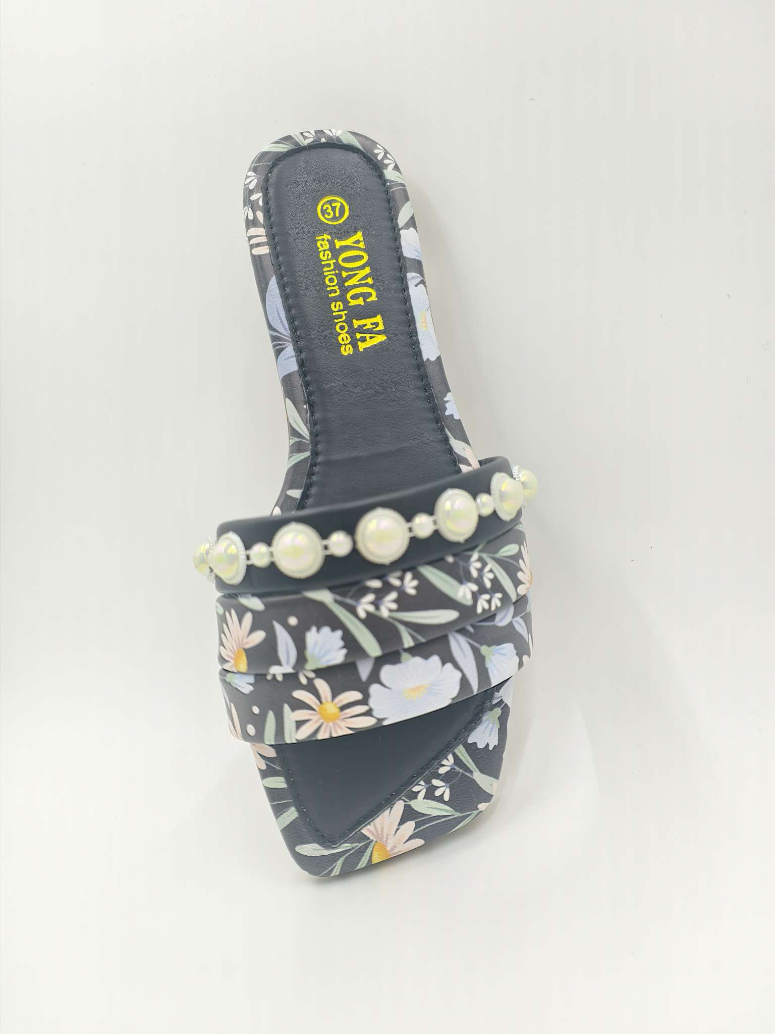 summer foreign trade chaozhou women's shoes fashion shoes special small chrysanthemum pearl chain pvc bottom slippers 中文版