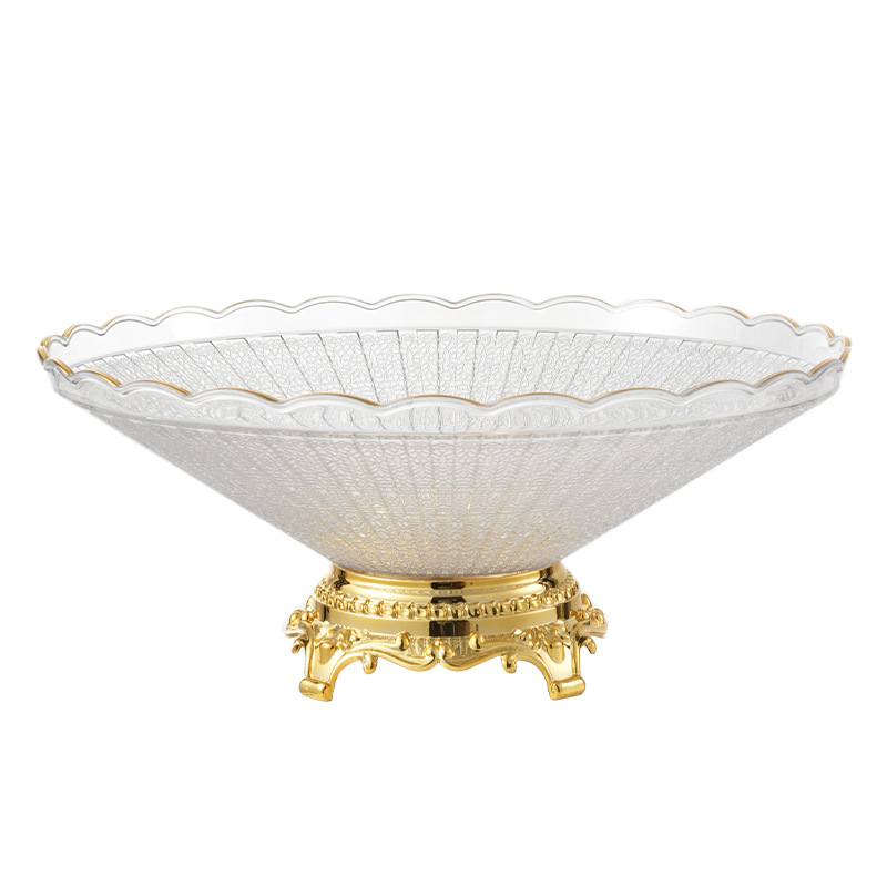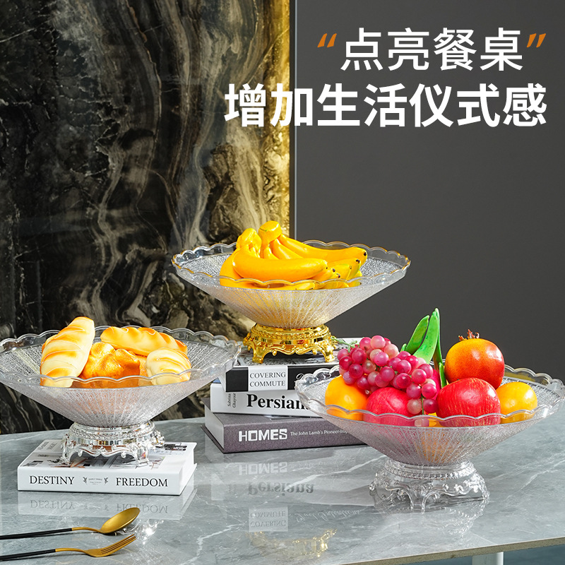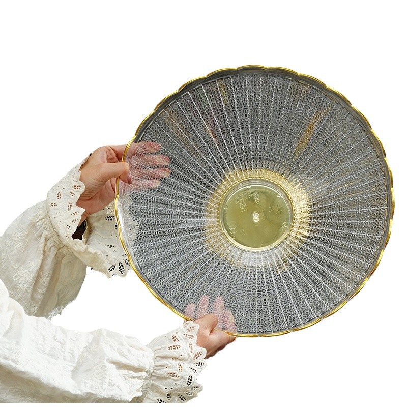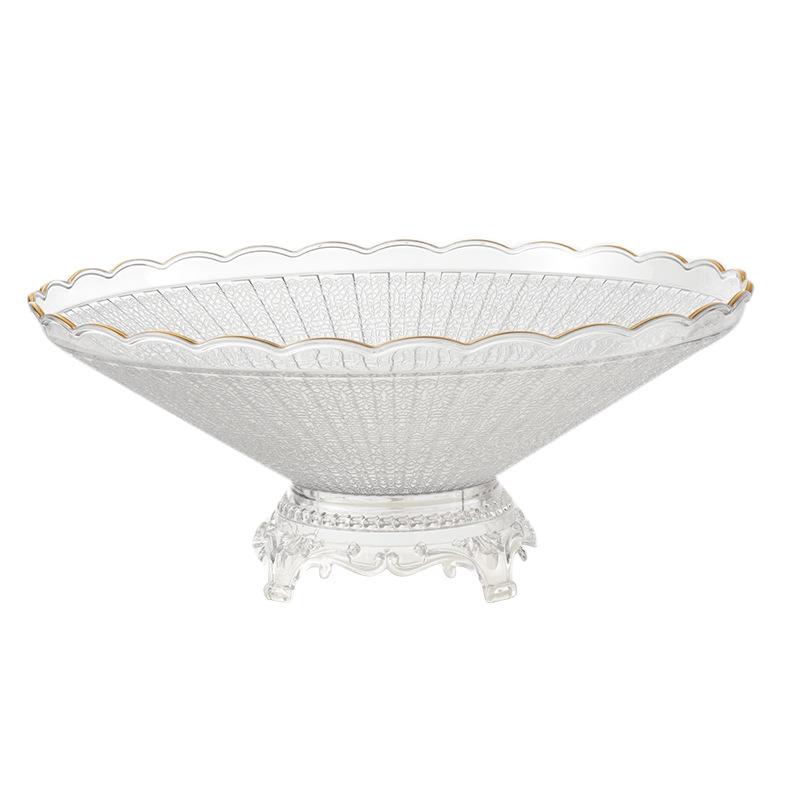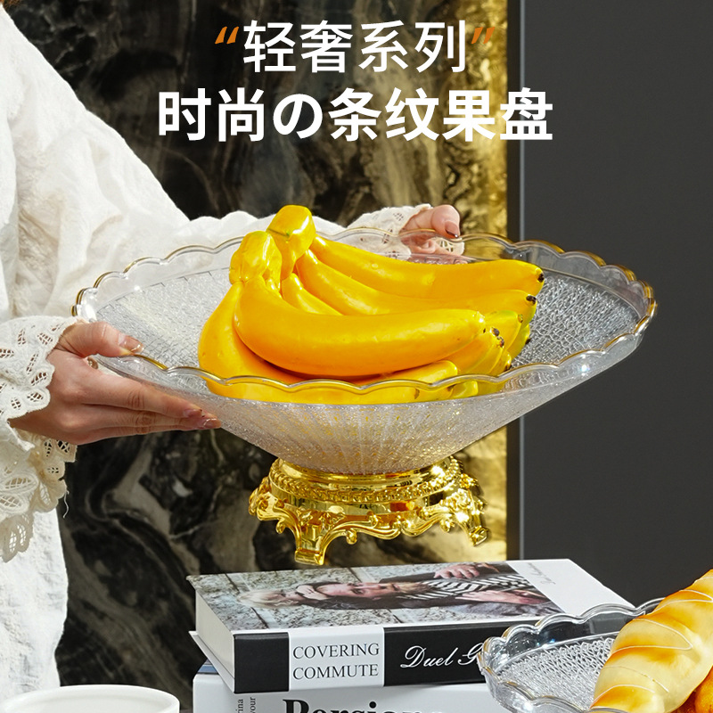 golden edge high foot lace striped fruit plate plastic pet transparent desktop finishing snack dish 中文版