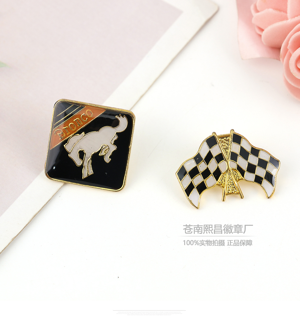 racing theme peripheral alloy brooch vintage black and white plaid flag shape badge personalized creative clothing accessories 中文版