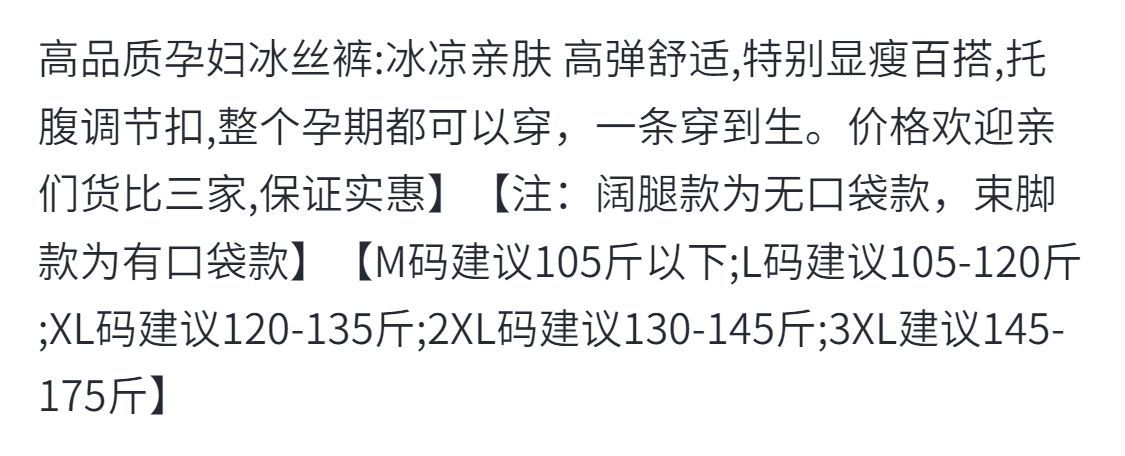 | pink wide leg (single piece) | ¥17.6 | 10 piece available |
