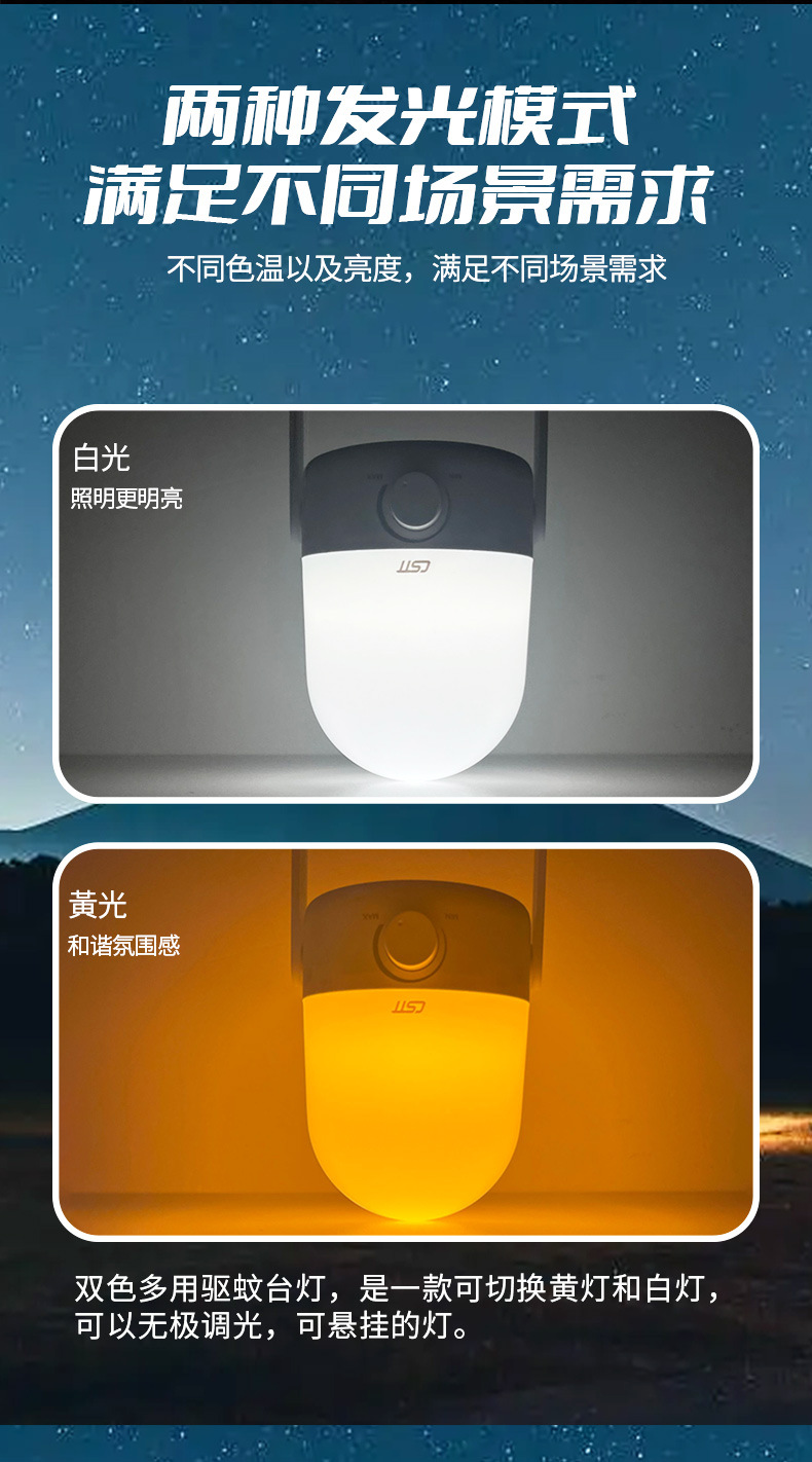 2024 New Model Dual-Color Mosquito Repellent Hand-held Camping Lamp
