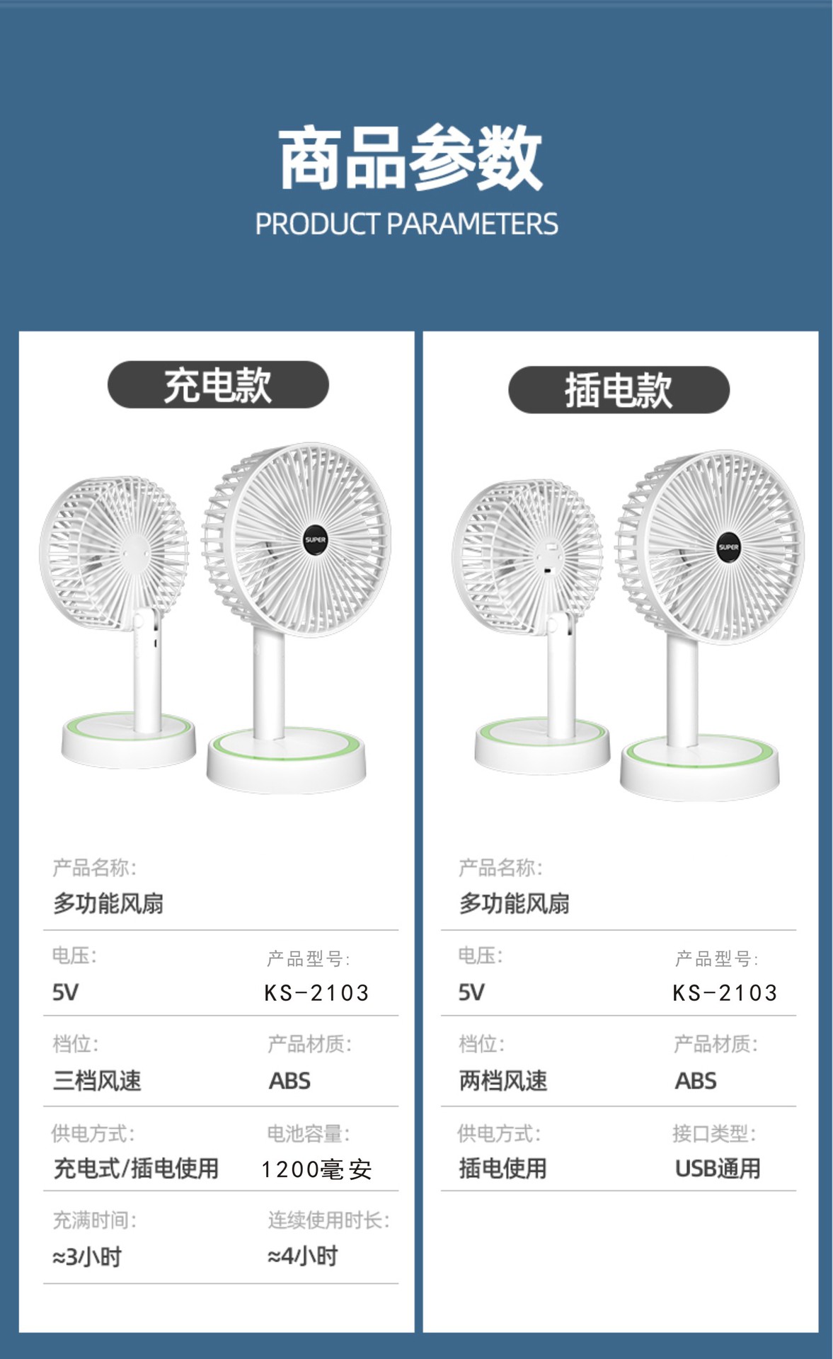 F1落地扇【直插款】【充电款4000MAH】