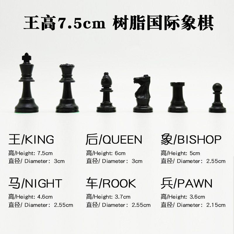 Different models of chess pieces have different heights.