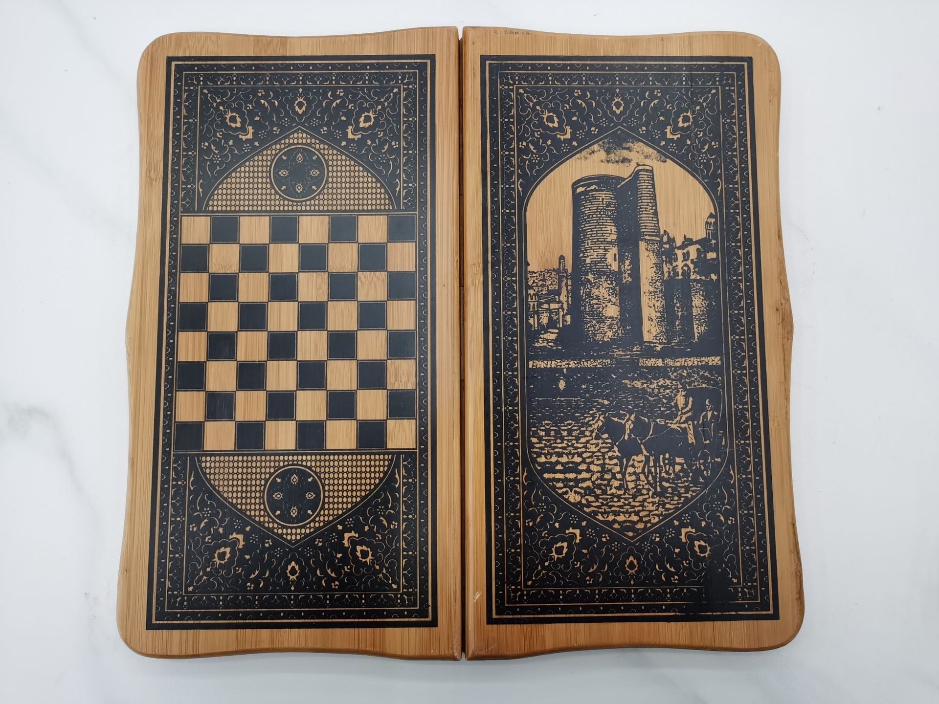 Wooden snake and spear pattern with floral design