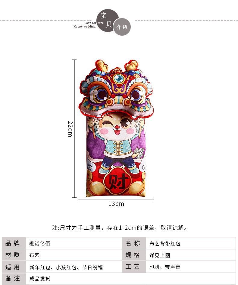 | cartoon cloth red envelope (can hold ten thousand yuan) | ¥9.75 | 300 piece available |