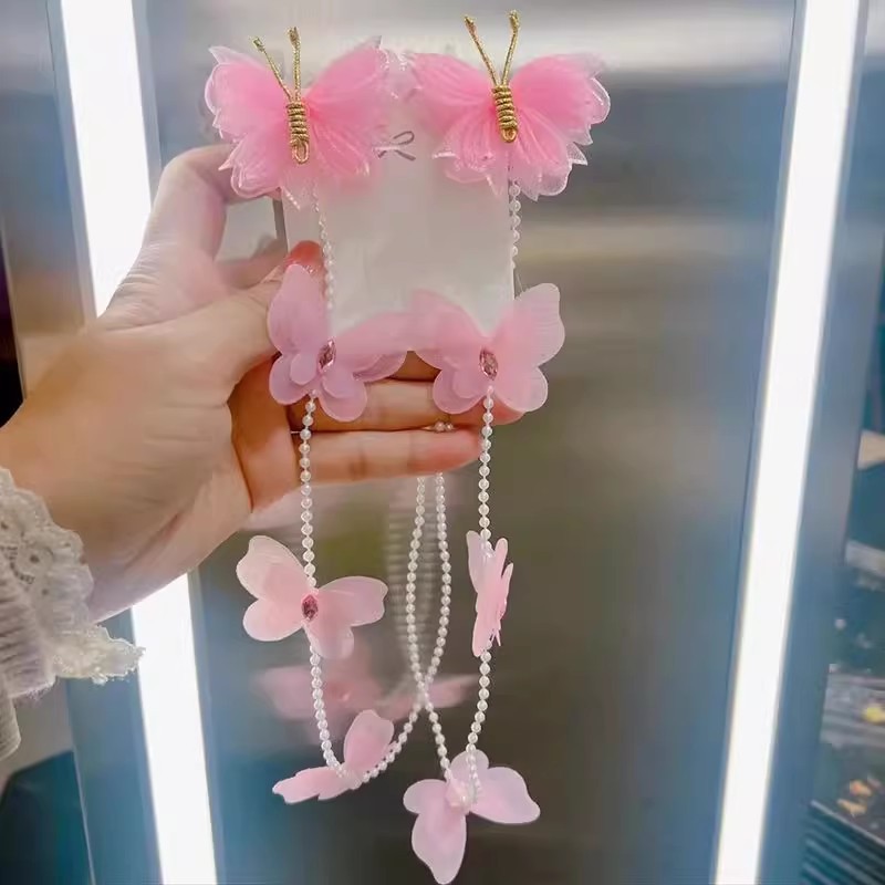 10# pink butterfly braided chain pair