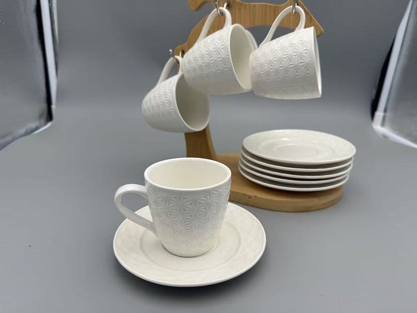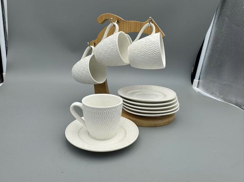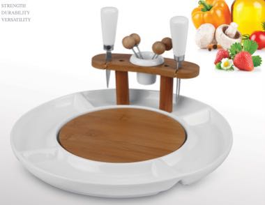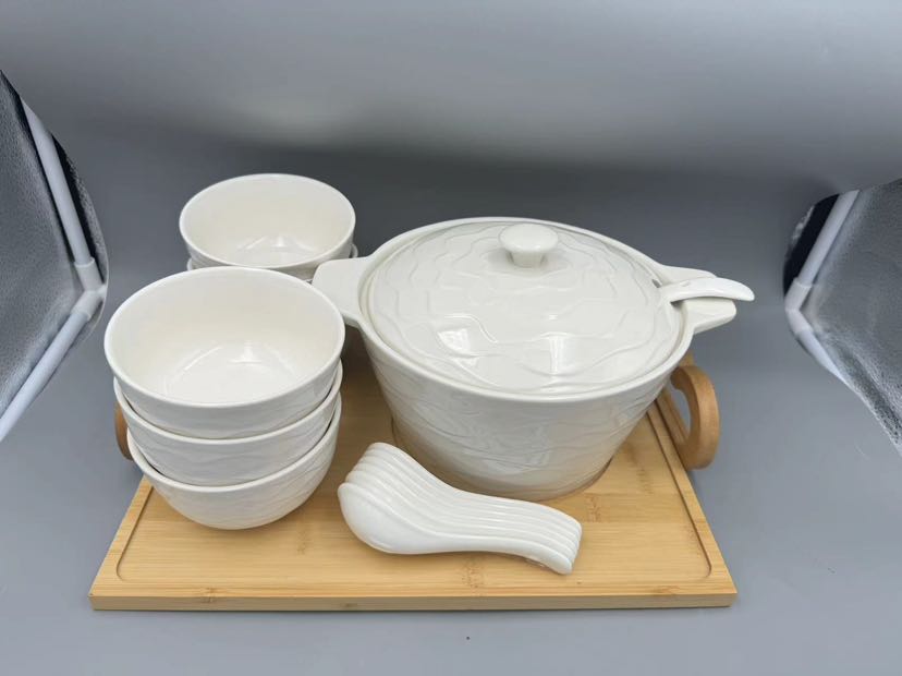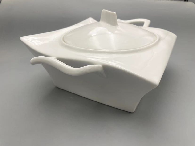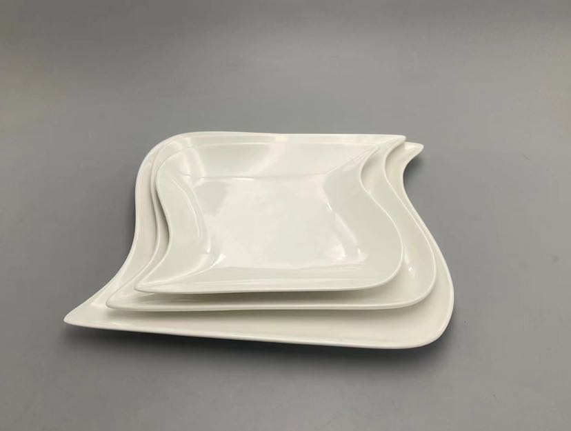 square and round lines white porcelain with wooden pallet small fresh tableware series